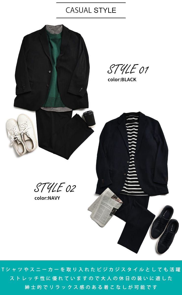 仕様 :外側ポケット数×3つ / 内側ポケット数×2つ / シングル2つボタン / ウォッシャブル / 防シワ性 / ストレッチ