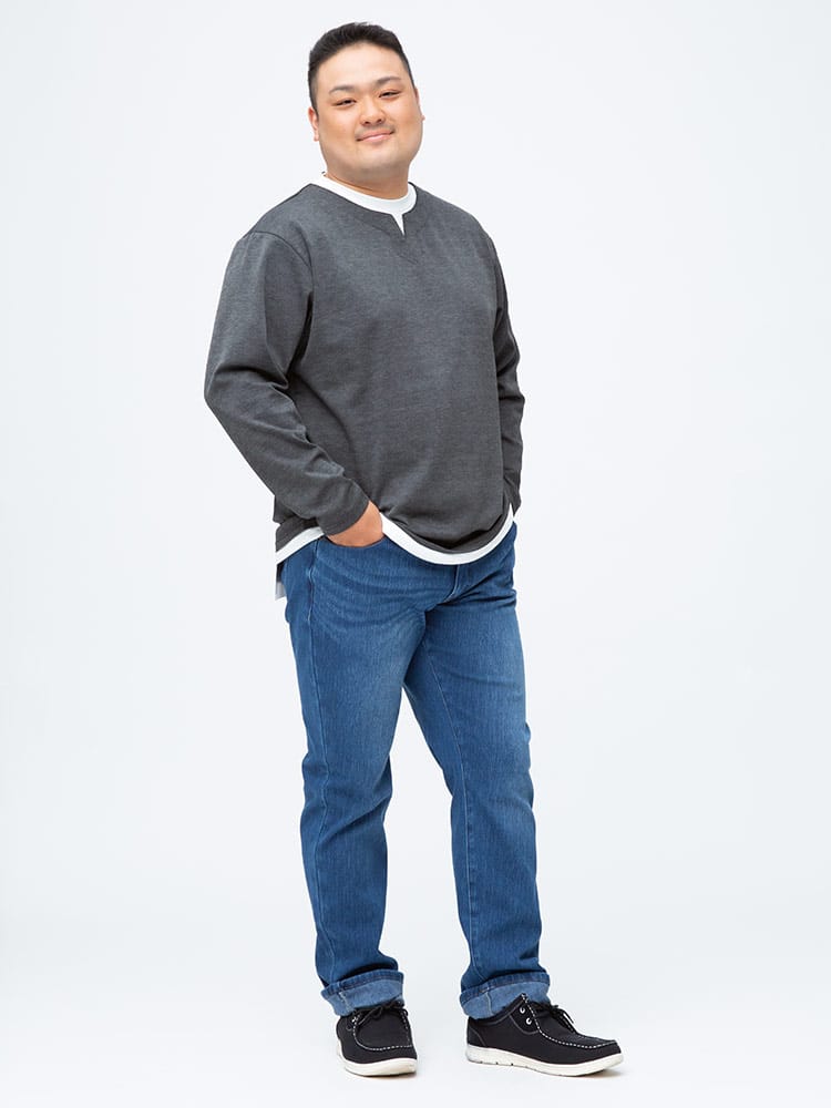 身長:195cm / B:120 / W:109 / H:116 / S:31.0cm 着用サイズ:X1(3L~4L相当)