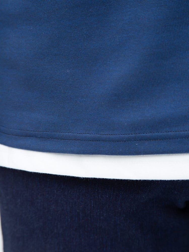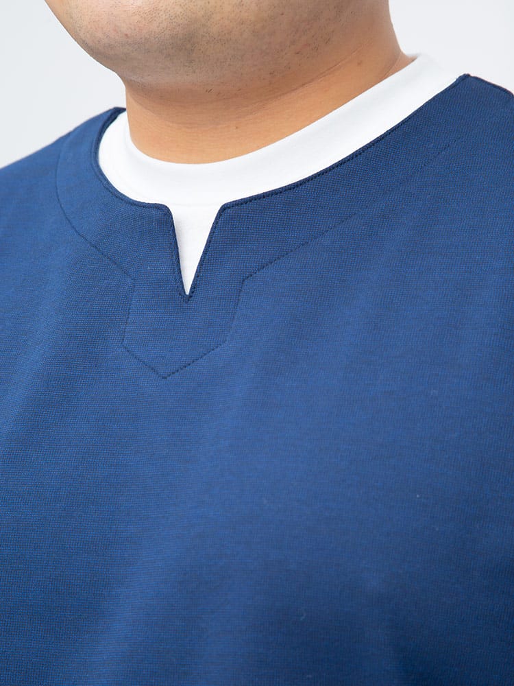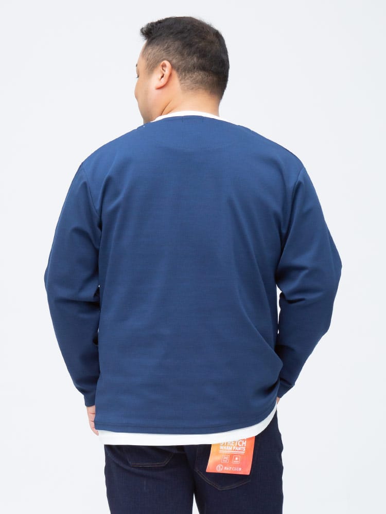 クルーネックのフェイクレイヤードデザインの長袖 Tシャツです。首元と裾にフェイクレイヤードデザインがポイント。フェイクレイヤードデザインでお手軽にレイヤードスタイルをお楽しみいただけます。無地デザインで大人のカジュアルスタイルにおすすめの一枚です。
