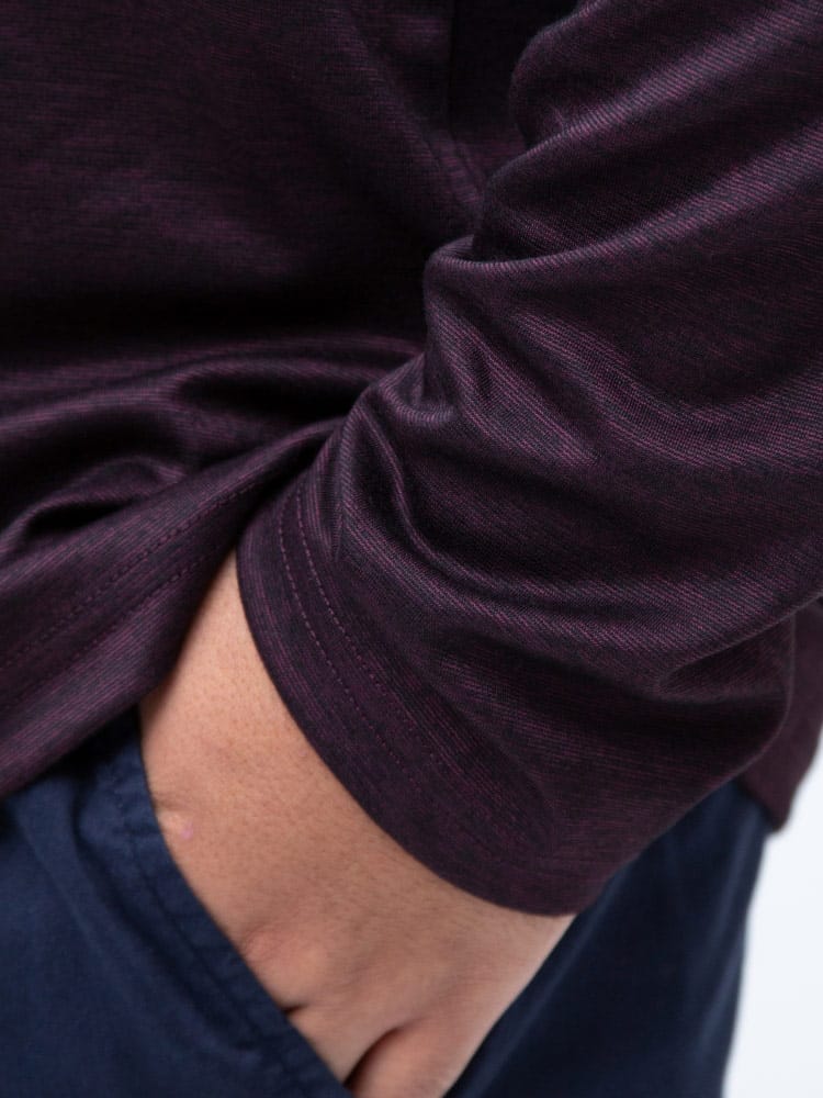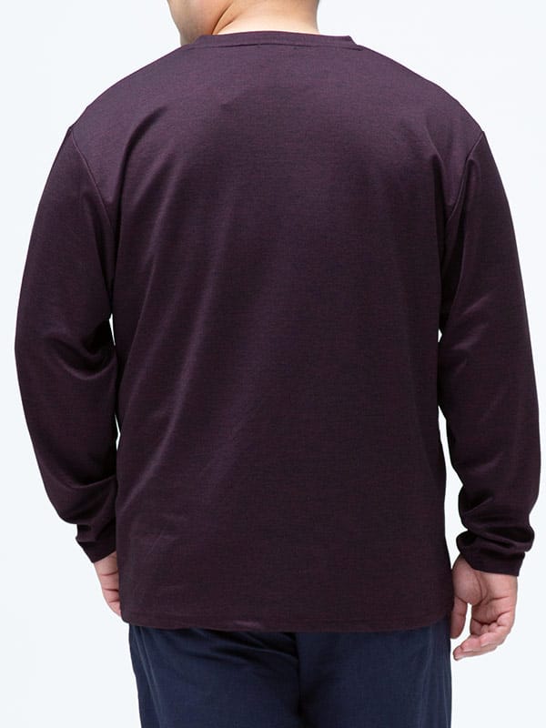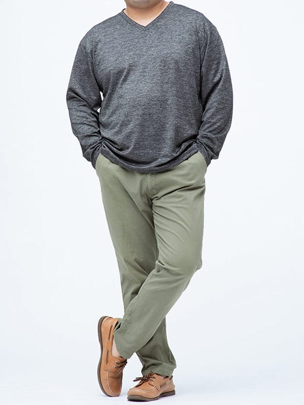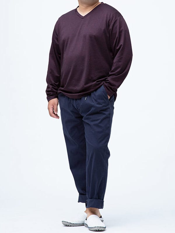 メランジポンチ生地でこなれ感をプラスしたVネック 長袖 Tシャツです。ハリ感のある生地で上品さもあるアイテム。首元はスッキリとしたVネック。ベーシックデザインで幅広いボトムスとマッチするアイテムです。
