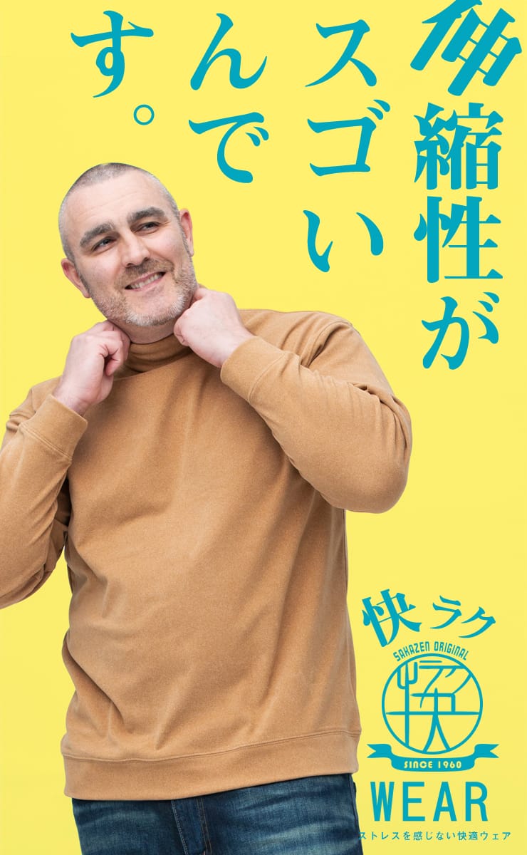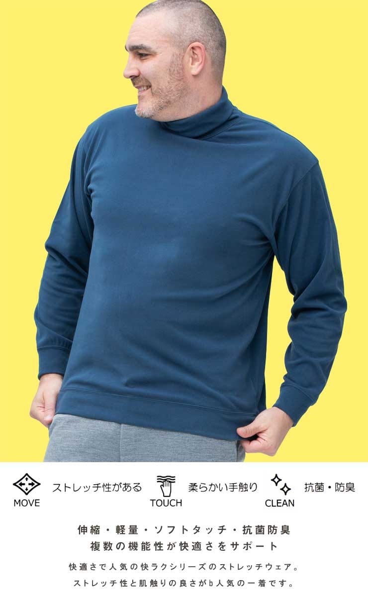 仕様 :ストレッチ / 柔らかい手触り / 抗菌防臭 / タートルネック