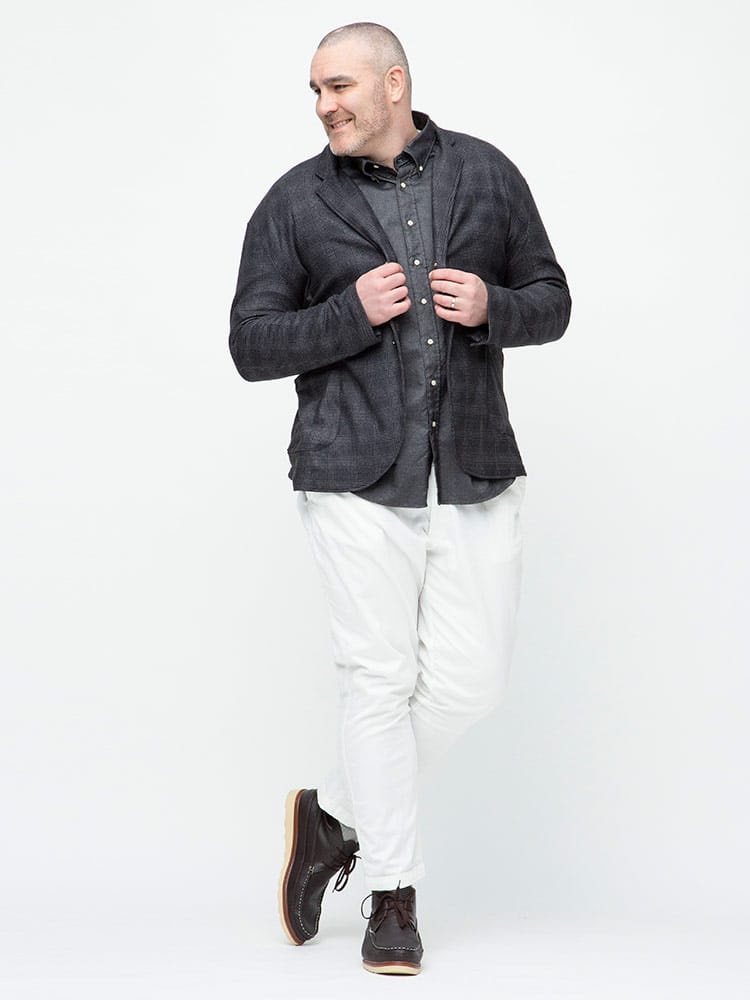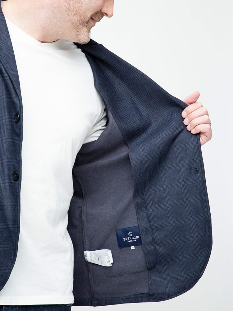 サカゼンの人気シリーズ、快ラクから起毛スムースカットジャケット登場。柔らかなフリースのような起毛かかった生地で作られた、シングルジャケット。上品なチェック柄を採用し、ラフながらしっかりとした大人の着こなしを楽しめます。テレワークでも、オフィスワークでも場所に問わず、ストレスなく、しっかりとキマってくれるオススメアイテムです。