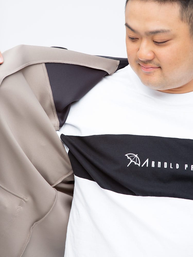 身長:195cm / B:120 / W:109 / H:116 / S:31.0cm 着用サイズ:X1(3L~4L相当)