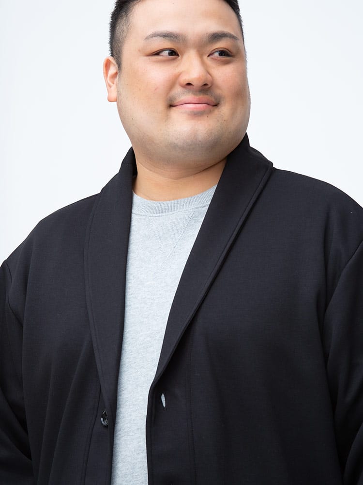 ハリ感のあるライトダンボール生地で仕上げたリラックス ショールカラー カーディガンです。ショールカラーで品の良さをプラス。無地なシンプルデザイン。リラックス感のあるデザインで在宅ワークやビジカジにおすすめです。