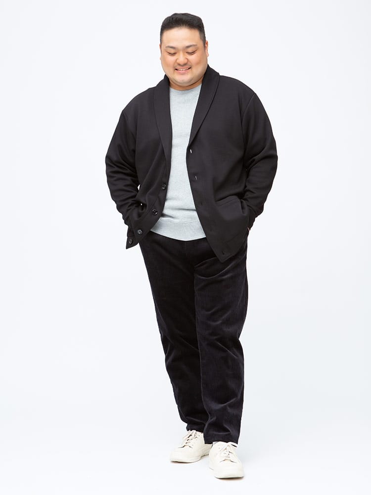 身長:195cm / B:120 / W:109 / H:116 / S:31.0cm 着用サイズ:X1(3L~4L相当)