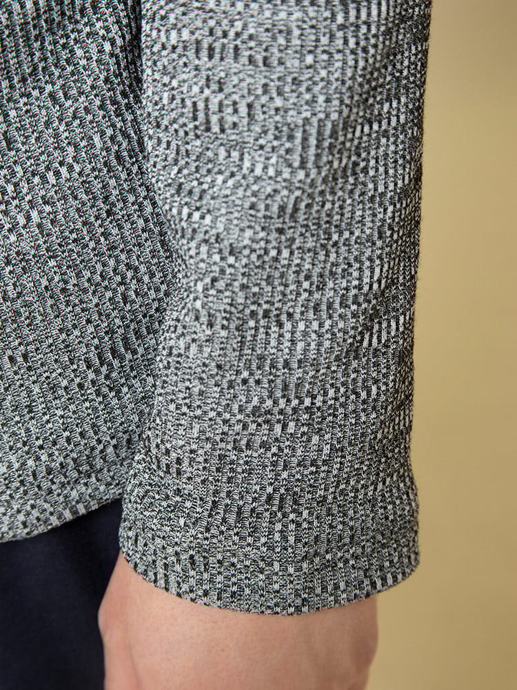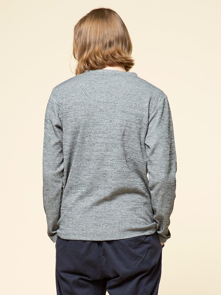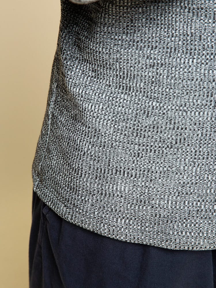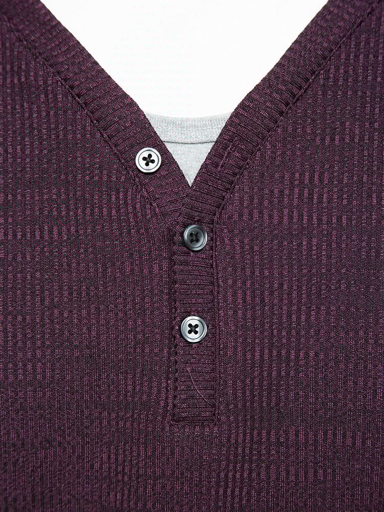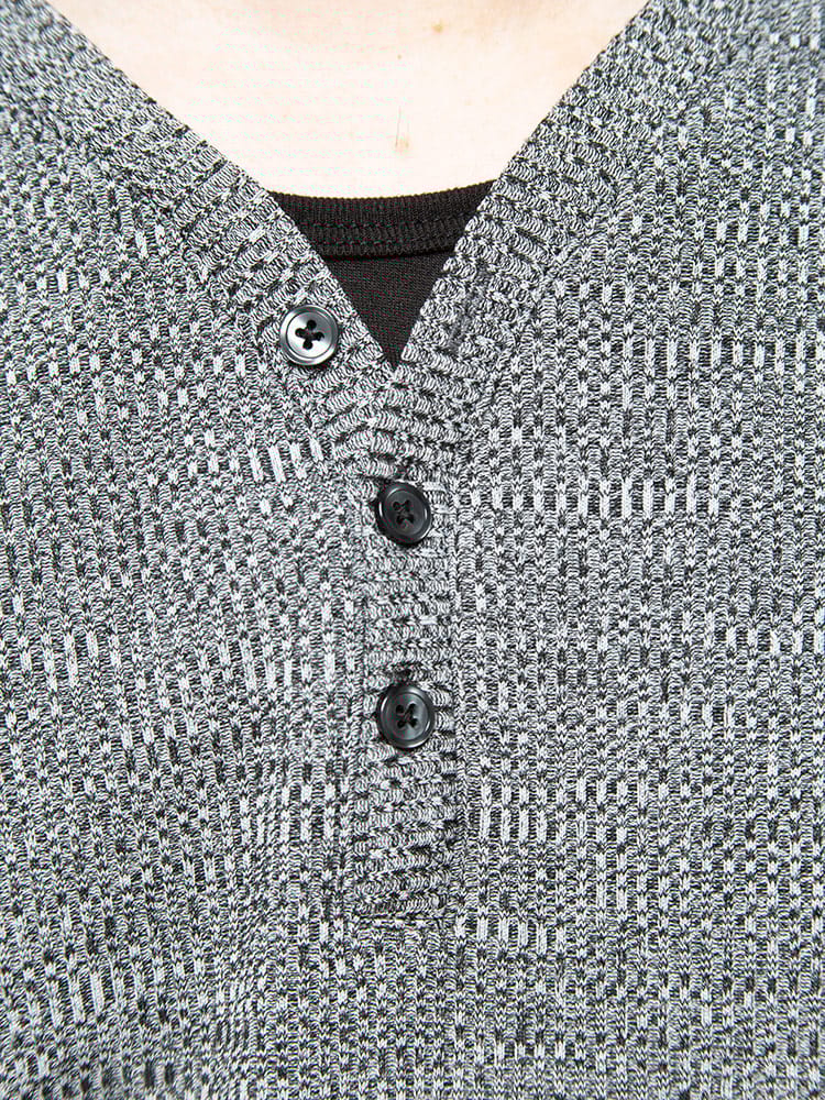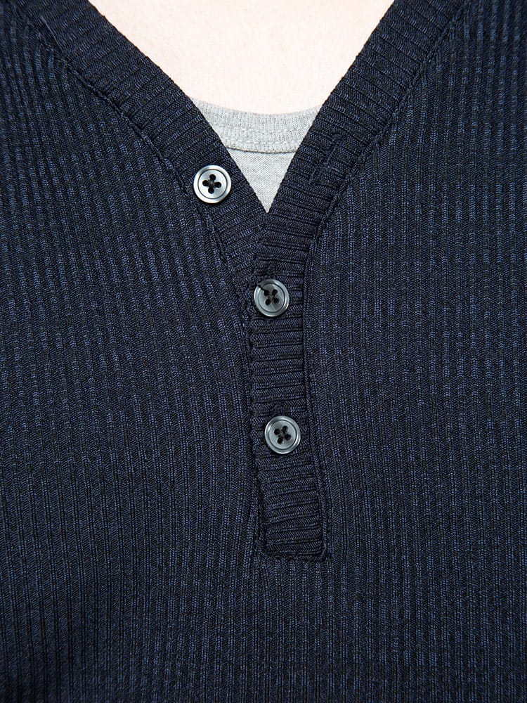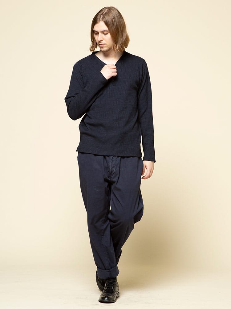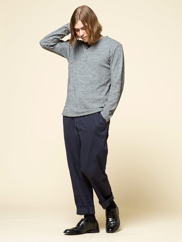 裏起毛で保温性に優れたフェイクレイヤード ヘンリーネック リブ ニットソー。首元はフェイクレイヤードのヘンリーネックでお手軽にレイヤードスタイルをお楽しみいただけます。リブ編みで暖かみのあるデザイン。ベーシックなデザインで幅広いスタイルに合わせていただけます。
