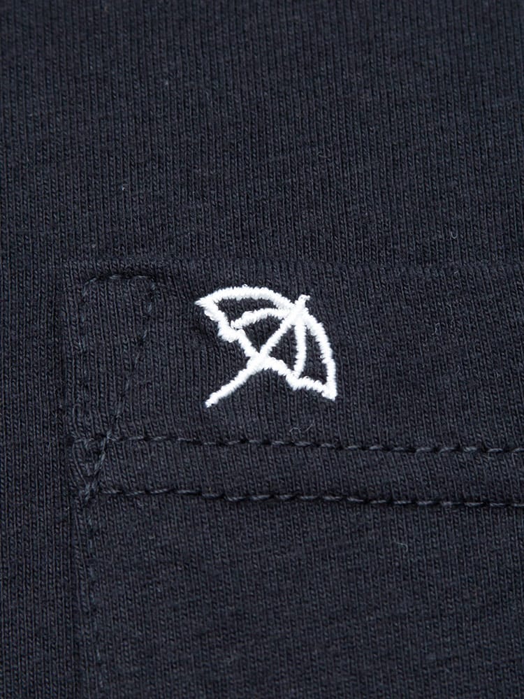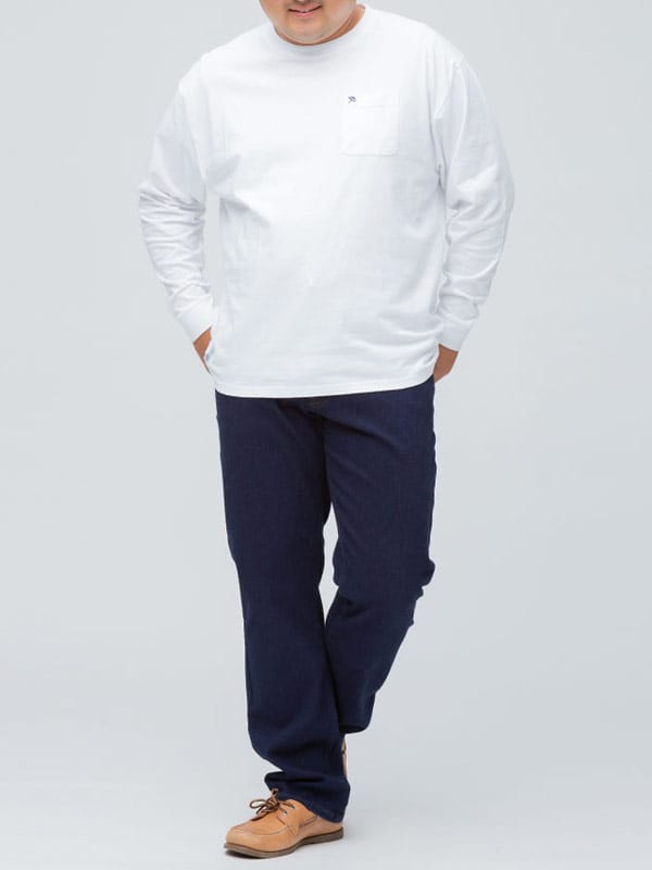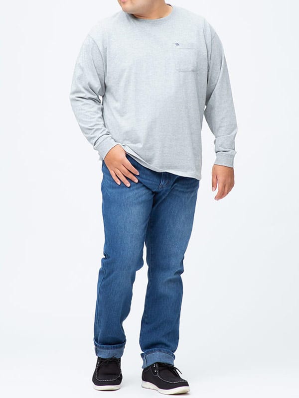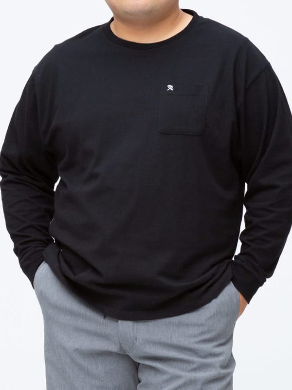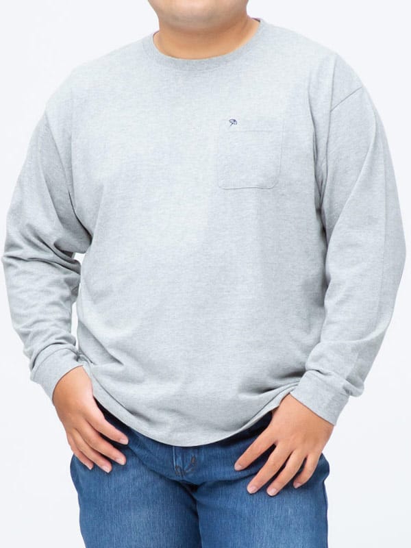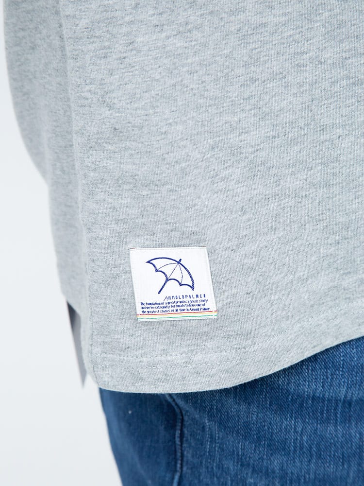 抗菌防臭効果のあるテープを使用したArnold Palmerの天竺 ワンポイント ポケット付き クルーネック 長袖 Tシャツ。左胸にポケットとロゴ刺繍。首元はベーシックなクルーネックデザイン。右裾にブランドタグ付き。抗菌防臭、消臭効果のあるアルファデオテープを使用。肌触りの良いコットン生地を使用しています。