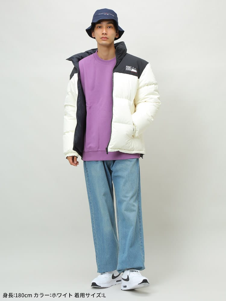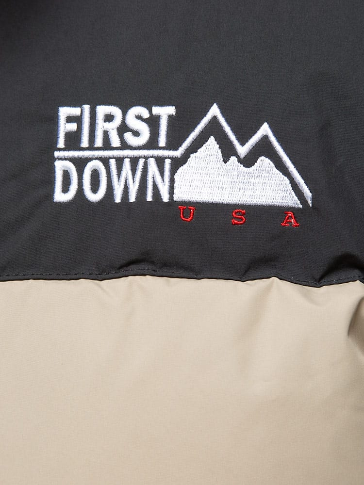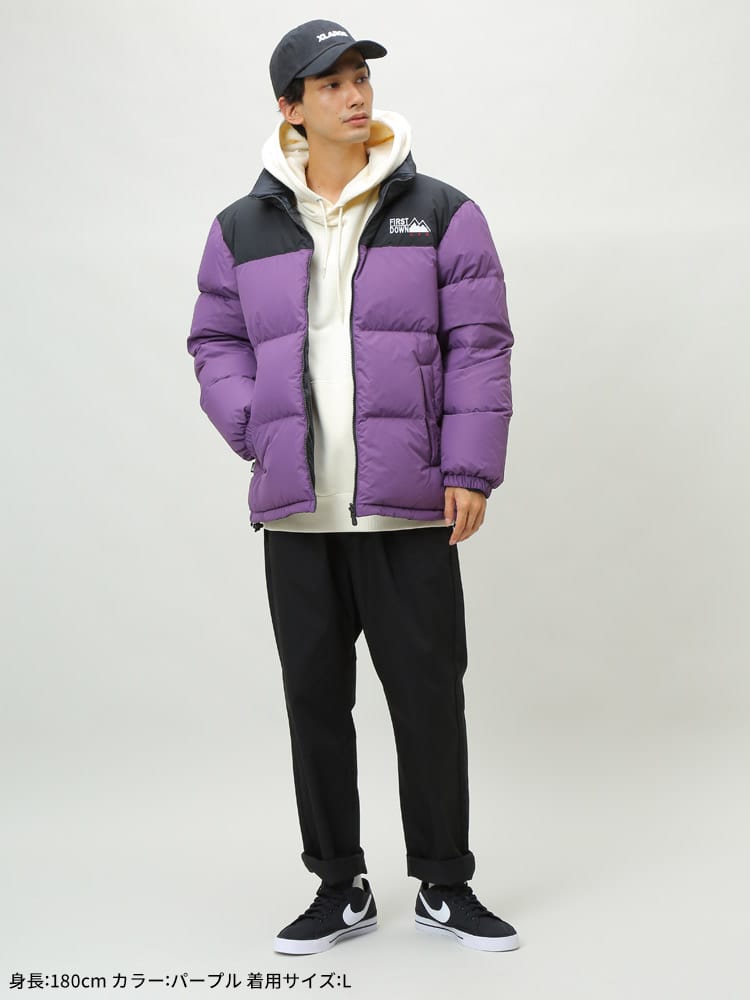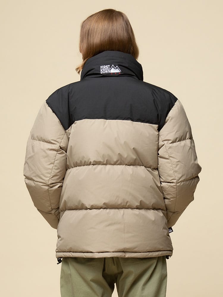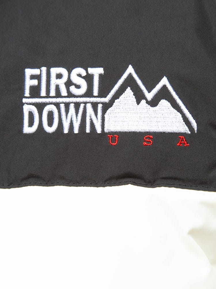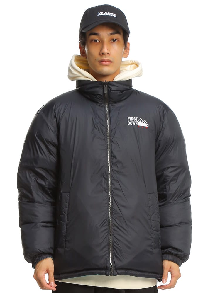 リバーシブルでお使いいただけるFIRST DOWN USAのフルジップ ダウンジャケット BUBBLE DOWN JKT。クラシカルなボックス型のシルエットに、すっきりとしたスタンドカラーを組み合わせた「バブルジャケット」はファーストダウンを代表する定番モデル。高密度で織り上げ、はっ水性を持たせて光沢を抑えた帝人製のポリエステル地を表側のシェルに採用した、軽量かつ機能的な仕上がりです。反対の面には20デニールの糸を使った高密度ナイロンを使っていて、こちらを表側にしても着られるリバーシブル仕様。豊富なカラーバリエーションと、700フィルパワーの高品質ダウンによる高い保温性が特徴です。左胸とバックネックのロゴ刺繍がポイント。今期モデルは細かなディテールの見直し、より現代的で着心地の良くしました。裾にはサイズ調整出来るドローコード付き。