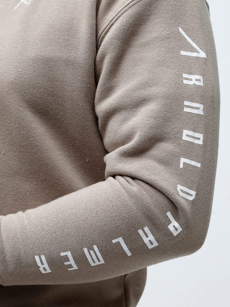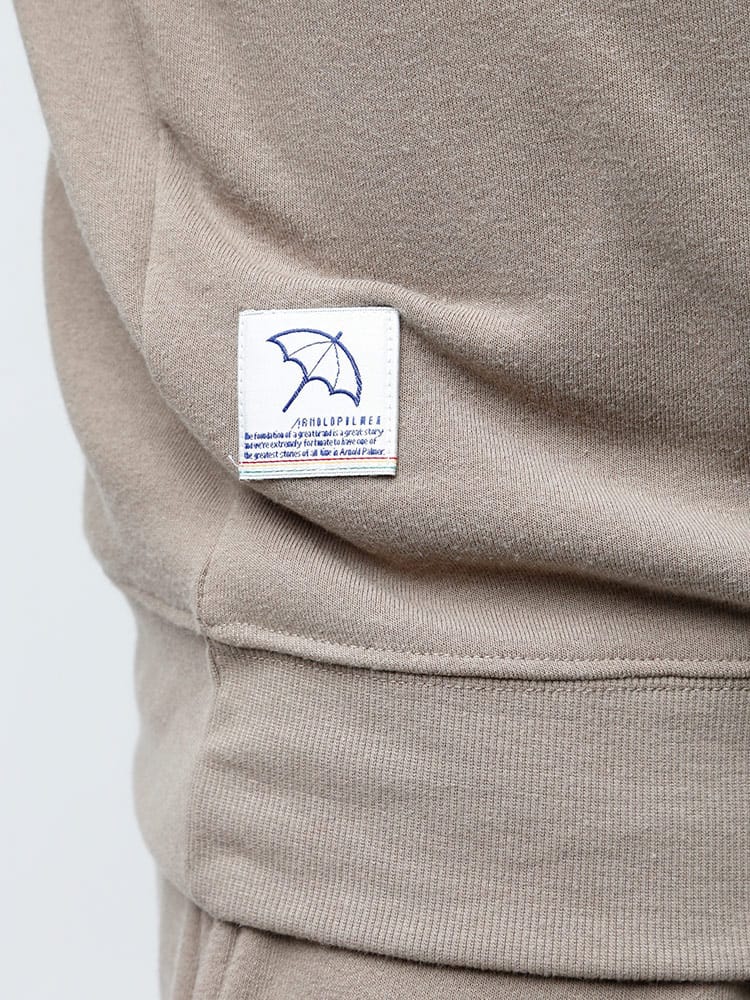 裏起毛仕様のArnold Palmerの袖ロゴプリント クルーネック 長袖 トレーナーです。左袖のロゴプリントがアクセントになったデザイン。左胸のロゴ刺繍もポイントです。右裾にブランドタグ付き。裏地は裏起毛で保温性抜群です。カジュアルスタイルにおすすめのアイテムです。