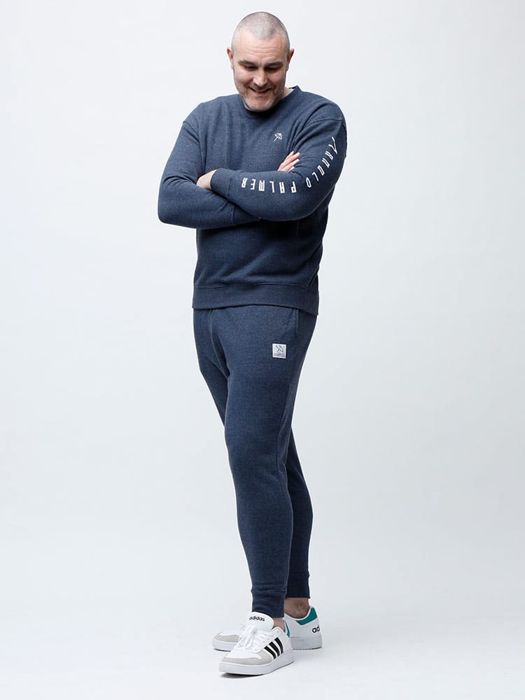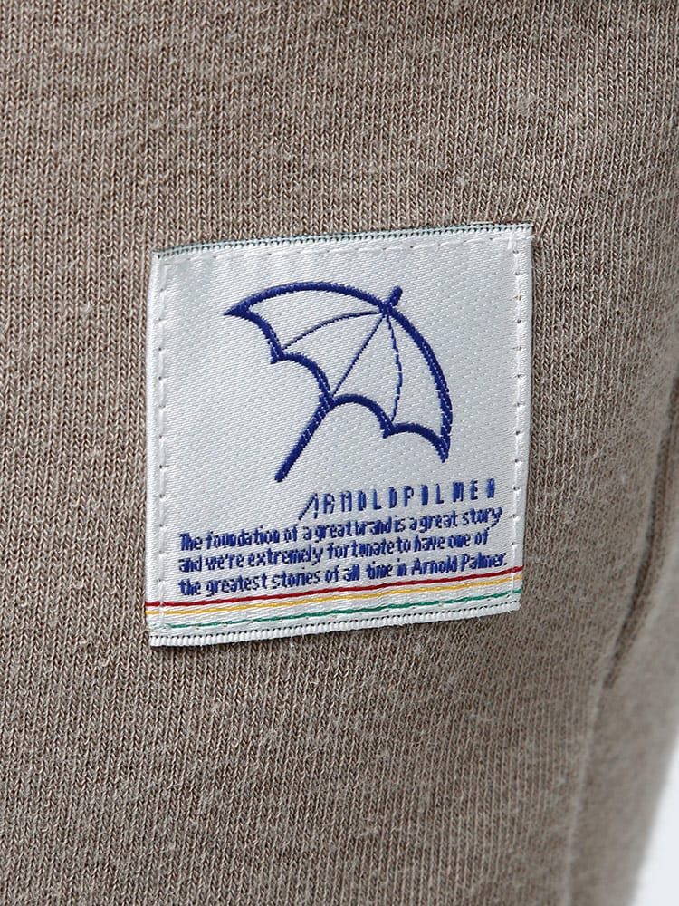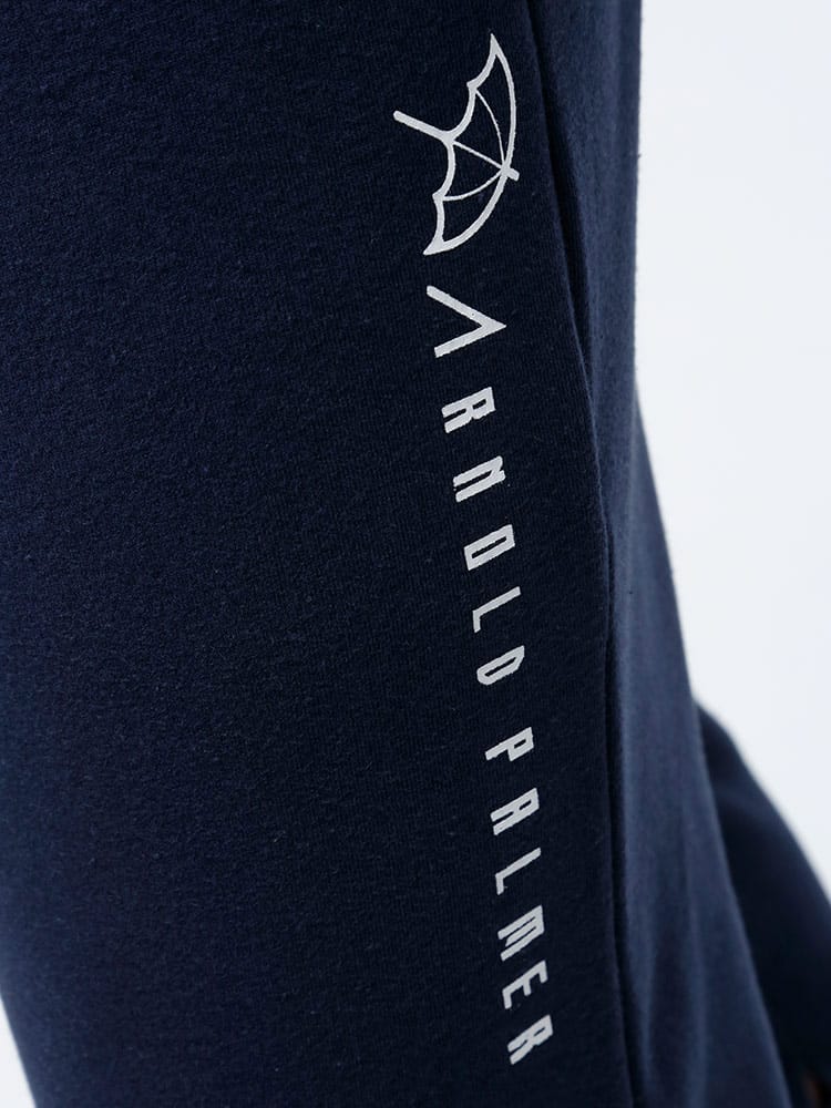 裏起毛のArnold Palmerのワンポイント スウェットパンツです。フロント左ポケットにブランドタグとプランドロゴプリントデザイン。ウエストはゴムとドローコード付きでサイズ調整出来ます。裾はリブデザイン。裏地は裏起毛で保温性抜群
