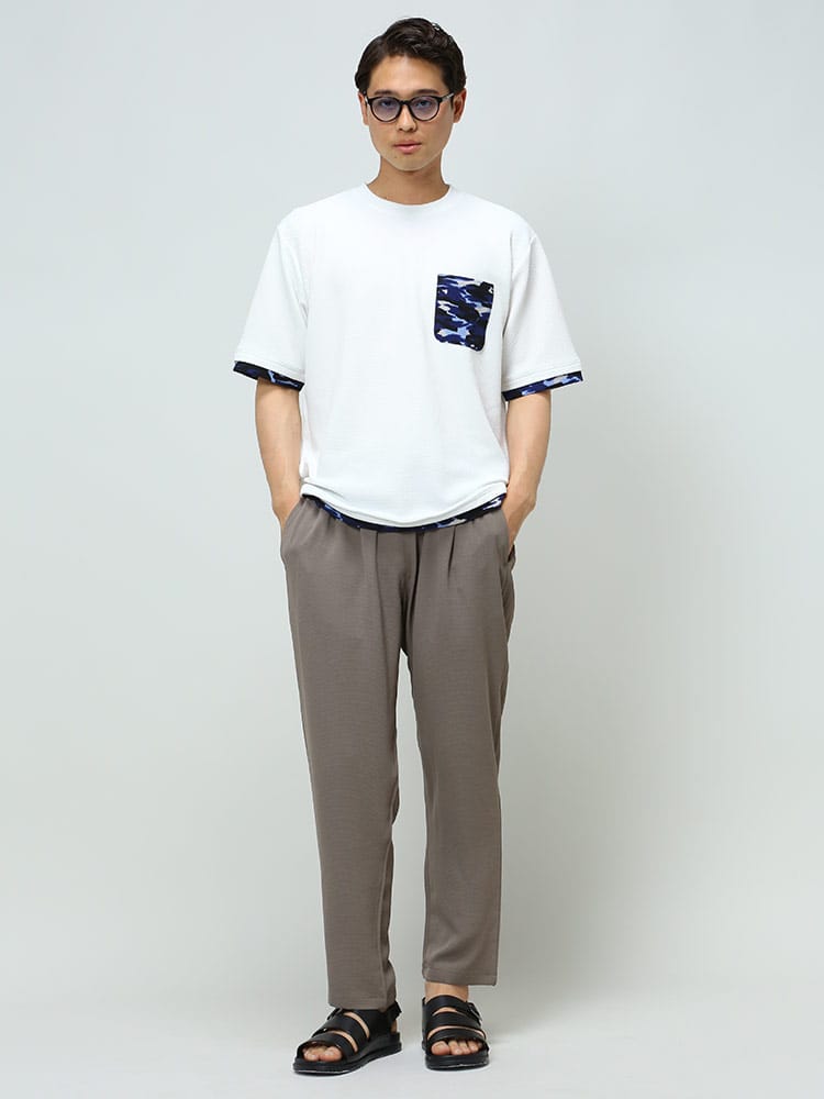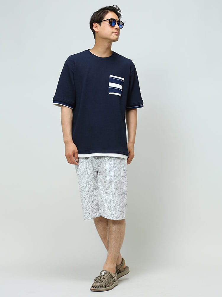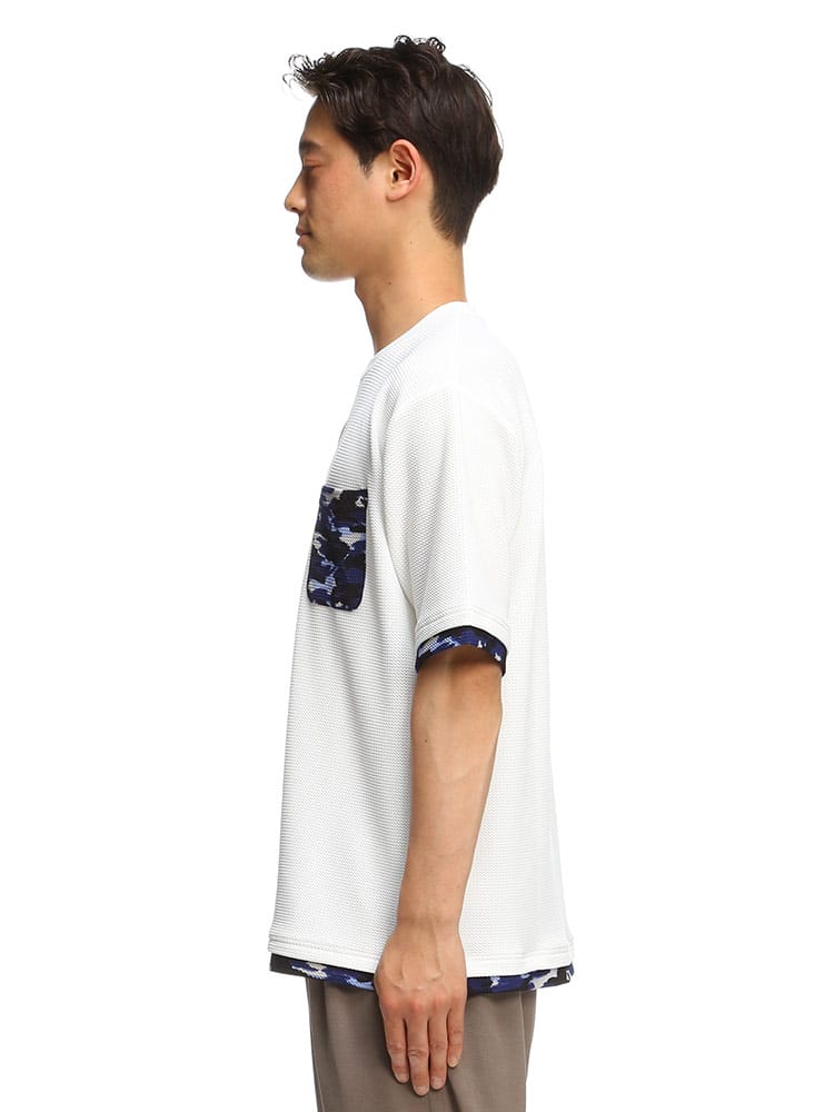 サカゼンの人気シリーズ、快ラクからワッフル ポケット 切り替え クルーネック 半袖 Tシャツが登場。ワッフル生地で凹凸のあるサラッとした生地感。ひんやり冷たい接触冷感、シワになりづらい、ストレッチ性がある、柔らかい手触り、すぐ乾くで快適な着心地を提供します。ポケット、袖口、裾のデザインがポイントです。首元はベーシックなクルーネックデザイン。カジュアルスタイルにおすすめのアイテムです。