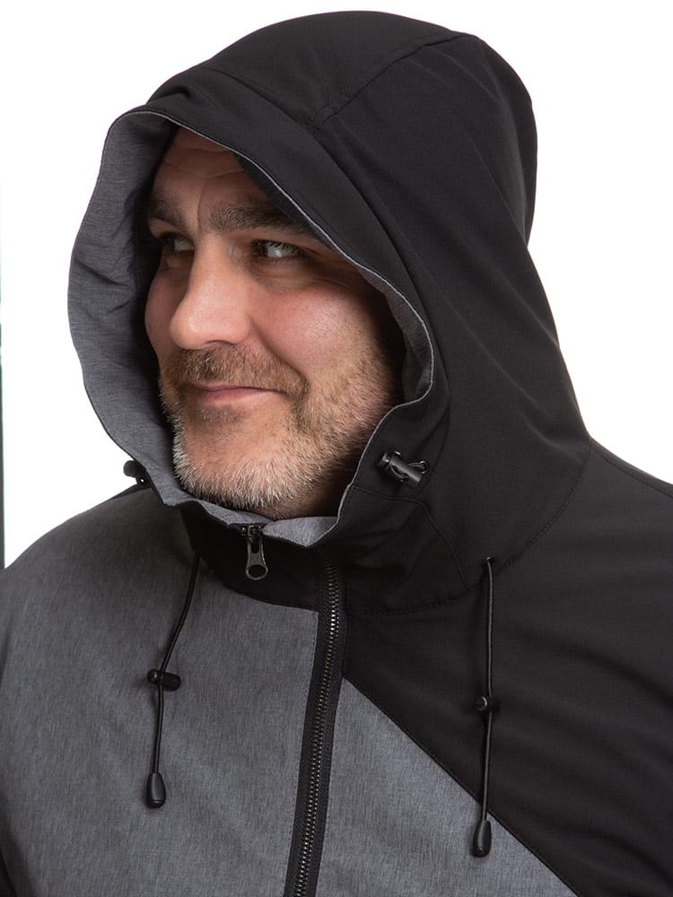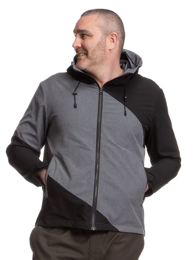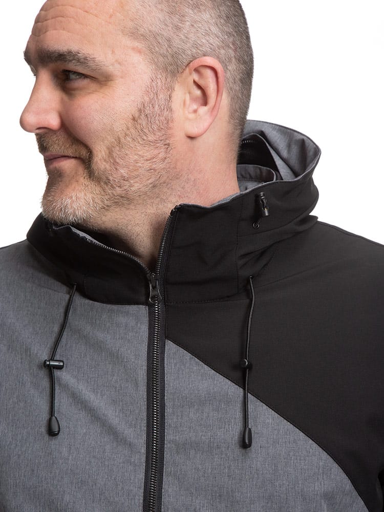 撥水加工を施した4WAYストレッチ ボリュームネック フルジップ ジャケットです。首元はボリュームネックデザインで首元内側のジップを開閉するとフードになります。4WAYストレッチで快適な着用感です。裏地は凸凹で汗のべたつきを軽減します。裾はサイズ調整出来るコード付きです。スタイリッシュなデザインでマルチなシーンに着ていただけます。