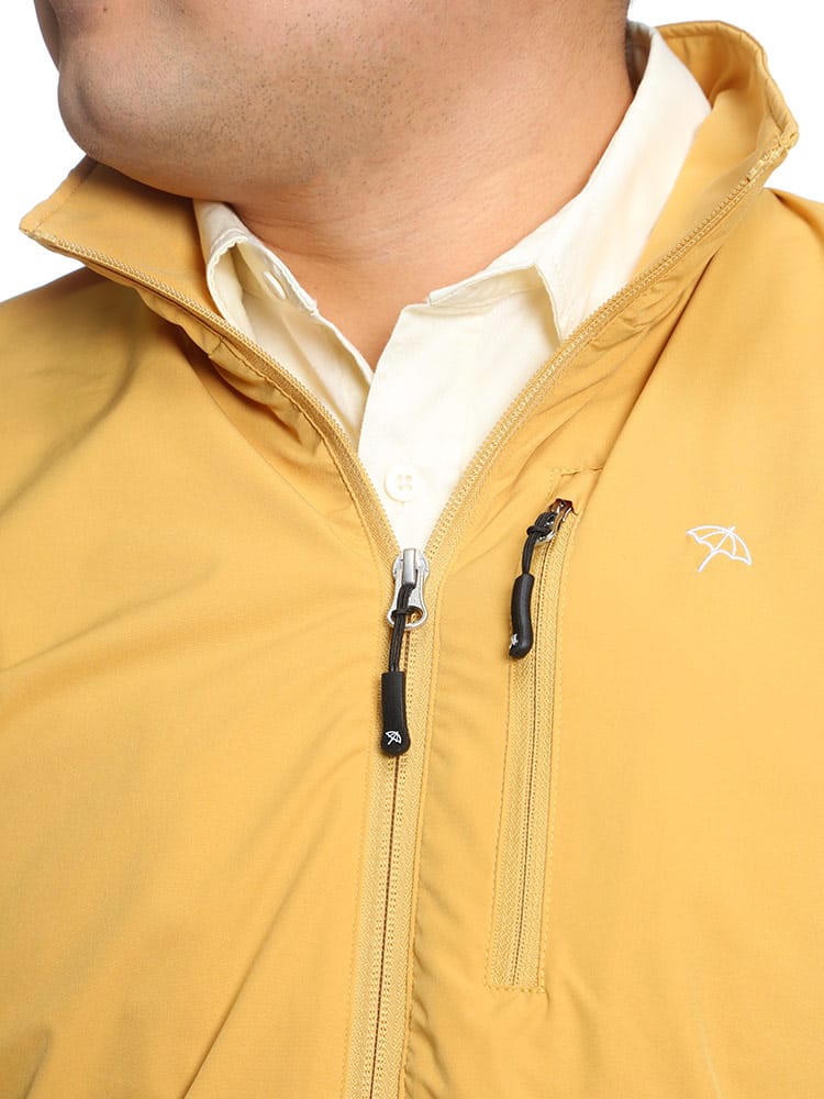 撥水加工を施したARNOLD PALMERのストレッチ フルジップ スタンド ジャケットです。左胸のロゴ刺繍と左袖のロゴワッペンがポイントです。裾にはサイズ調整出来るコード付き。裏地はメッシュ地で通気性に優れています。