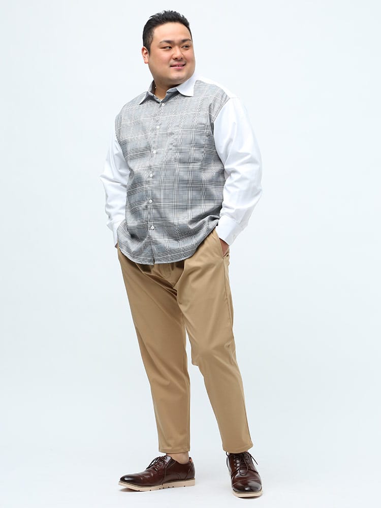 身長:178cm / 体重105kg / B:113 / W:105 / H:108 / S:28.0cm 着用サイズ:X1(3L~4L相当)