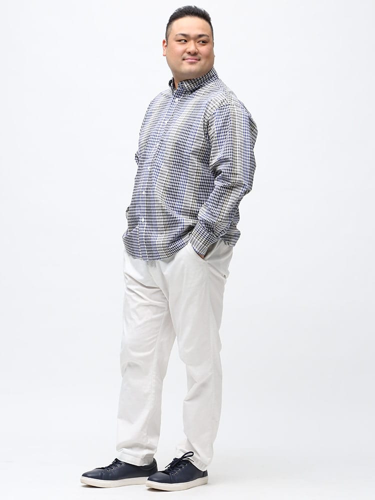 身長:178cm / 体重105kg / B:113 / W:105 / H:108 / S:28.0cm 着用サイズ:X1(3L~4L相当)