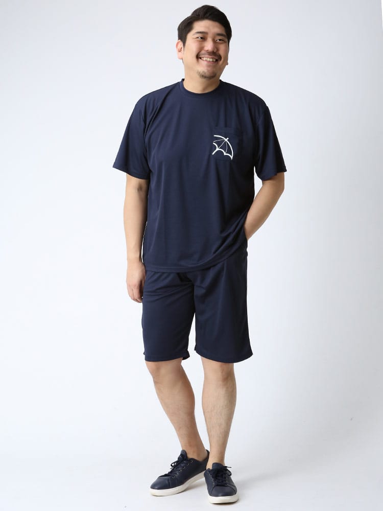 仕様 :セットアップ / トップス外側ポケット数×1つ / ボトムス外側ポケット数×3つ / クルーネック / ウエスト調節ゴム / 前閉じ / 吸水速乾