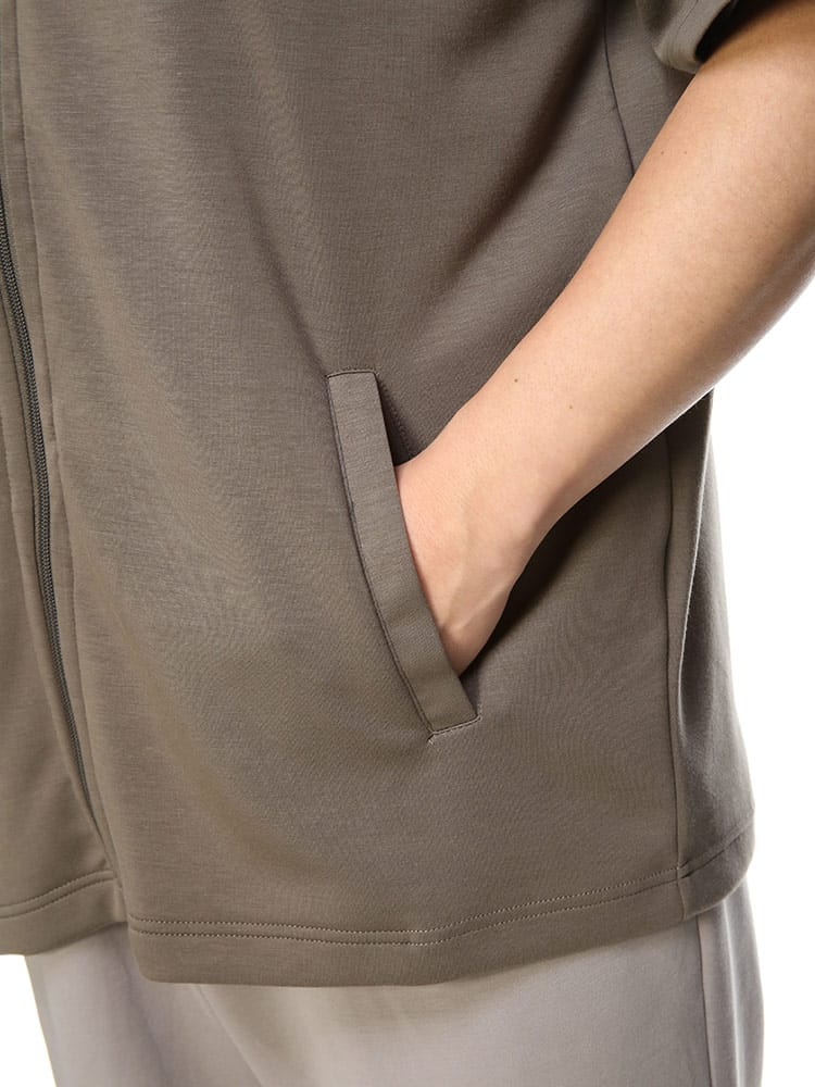 サカゼンの人気シリーズ、快ラクからふわとろ 接触冷感 ストレッチ 無地 フルジップ 半袖 パーカーが登場。ひんやり冷たい接触冷感、ストレッチ性がある、柔らかい手触り、で快適な着心地を提供します。落ち着いたデザインで大人のカジュアルスタイルにおすすめのアイテムです。