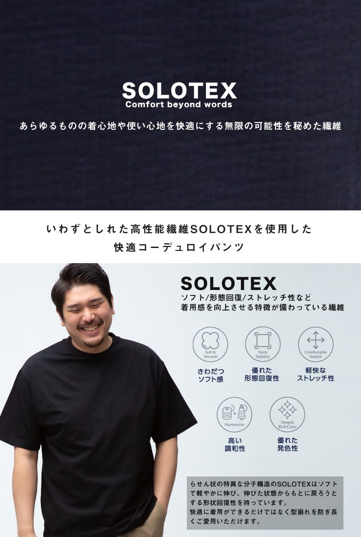 快適素材のSOLOTEX(ソロテックス)を使用した無地 クルーネック 半袖 Tシャツです。SOLOTEX(ソロテックス)は、あらゆるものの着心地や使い心地を快適にする、無限の可能性を秘めた繊維です。きわだつソフト感、優れた形態回復性と軽快なストレッチ性で快適な着心地を提供します。首元はベーシックなクルーネックデザイン。裾サイドにスリット入り。無地デザインでどんなスタイルにも合わせていただけます。