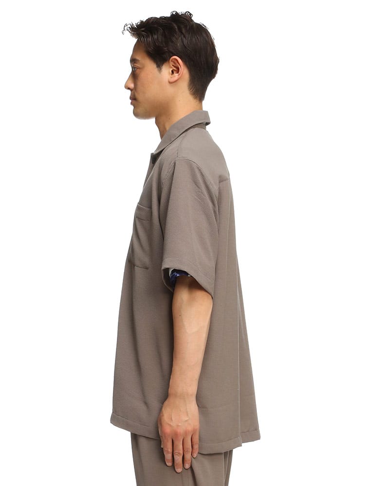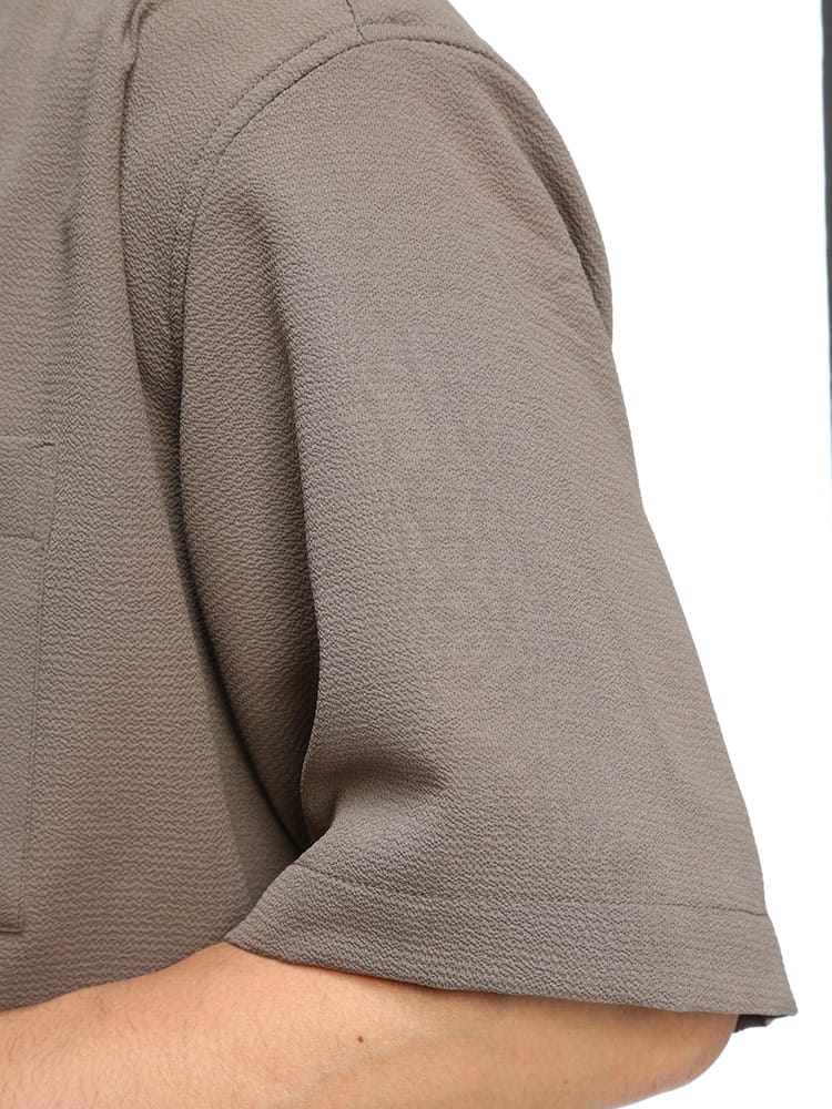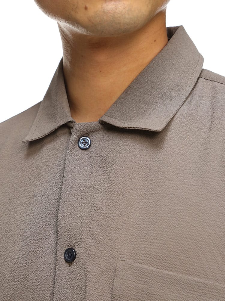 ストレスを感じさせない快適機能の『快ラク AIR』を搭載したストレッチ ドライ アムンゼン 無地 半袖 シャツです。シボ感のあるアムンゼン生地を使用しています。軽量、ストレッチ性、すぐ乾くの快適機能が付いています。左胸ポケットがポイント。裾サイドに動きやすいスリット入り。無地デザインでどんなスタイルにも取り入れていただけます。