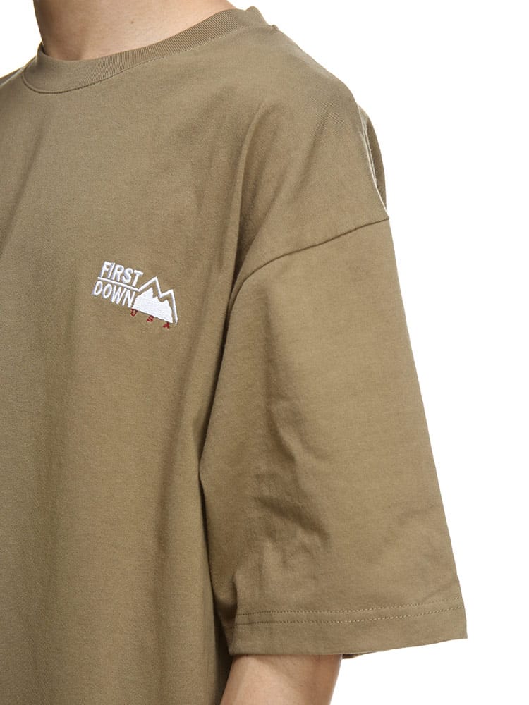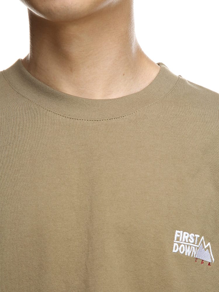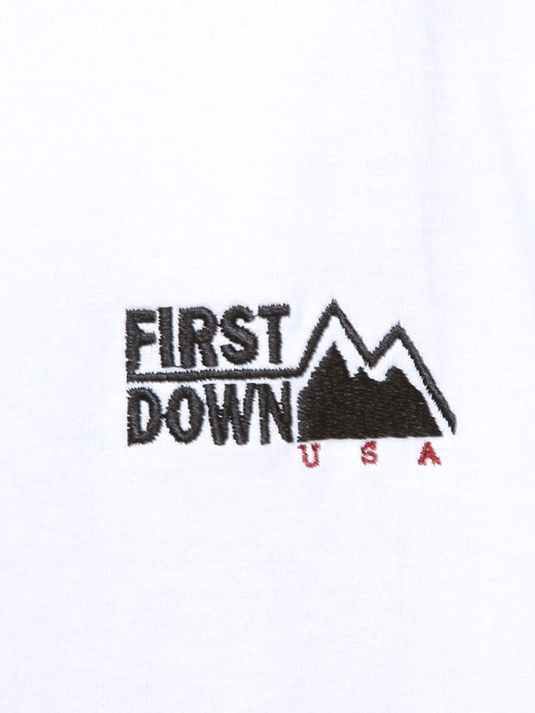 FIRSTDOWN USAの「S/S TEE COTTON JERSEY」。ハリコシがあり、ドライタッチの天竺素材を採用。左胸のロゴ刺繍がポイント。ゆったりとしたシルエットで、幅広いコーディネートに着用頂けます。