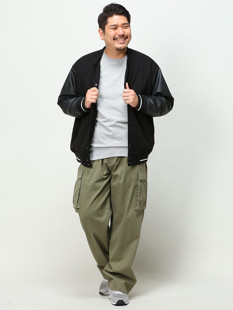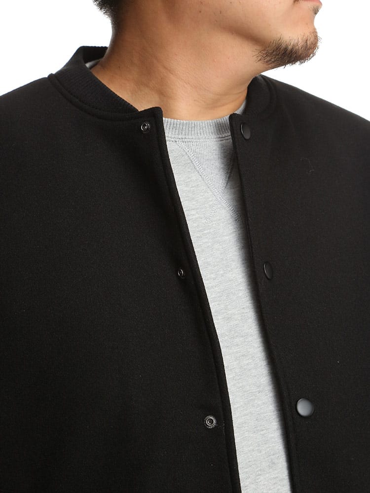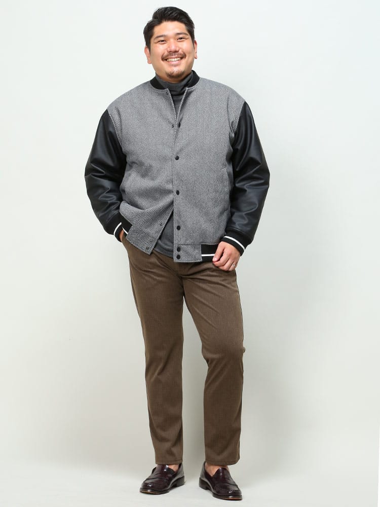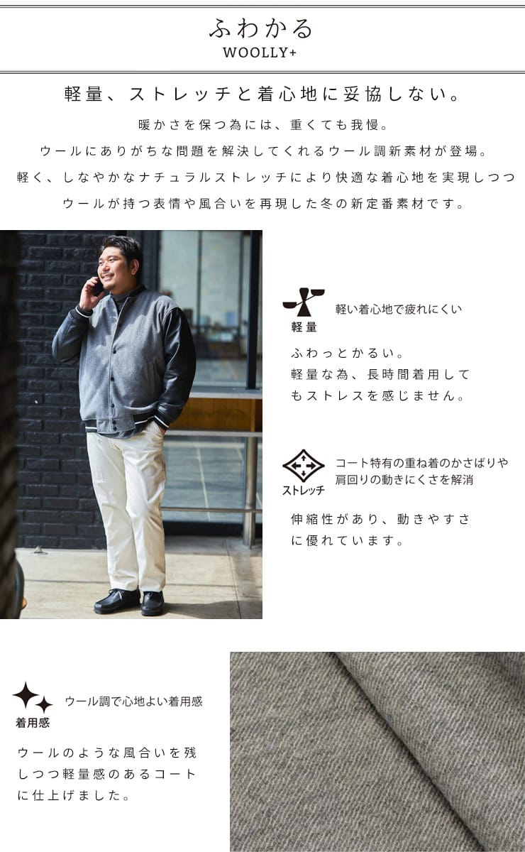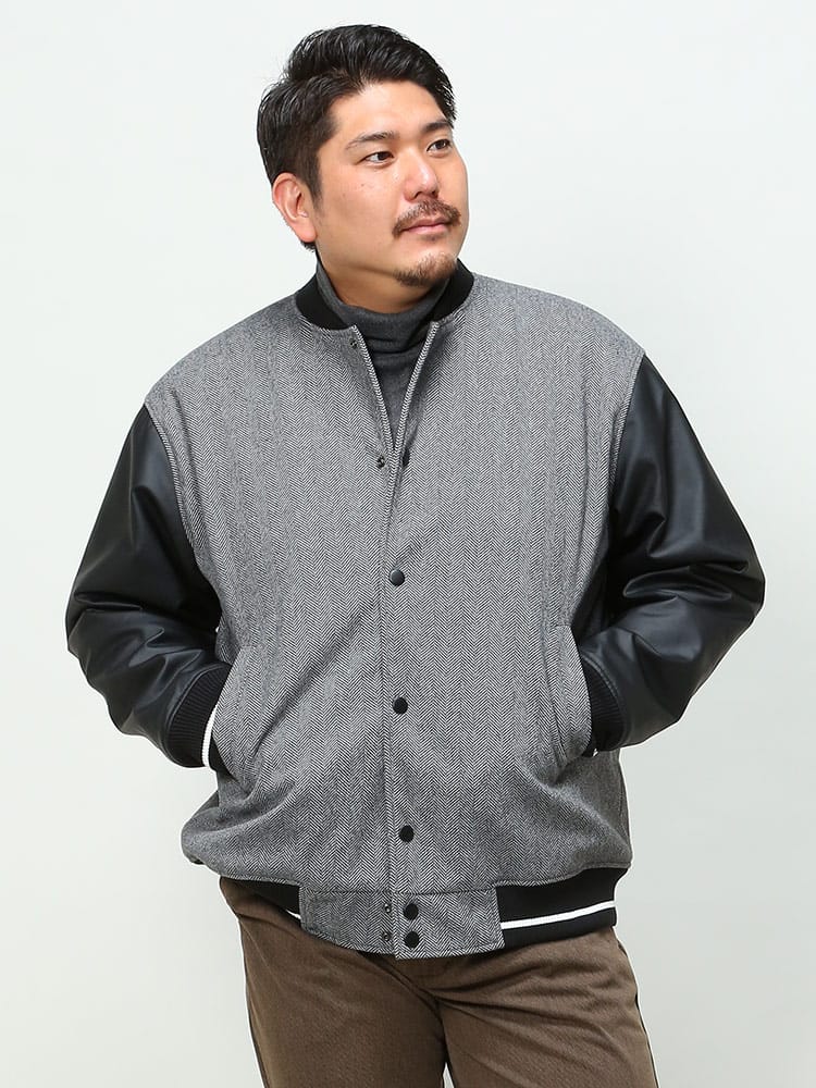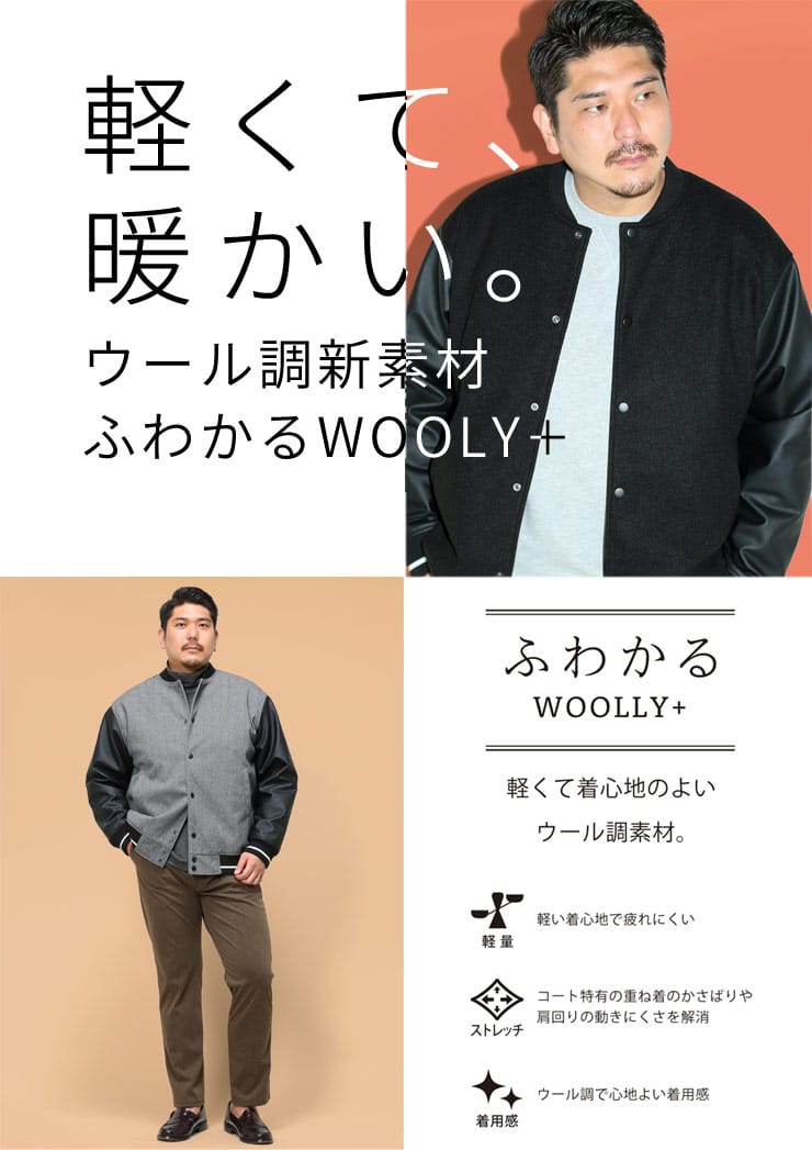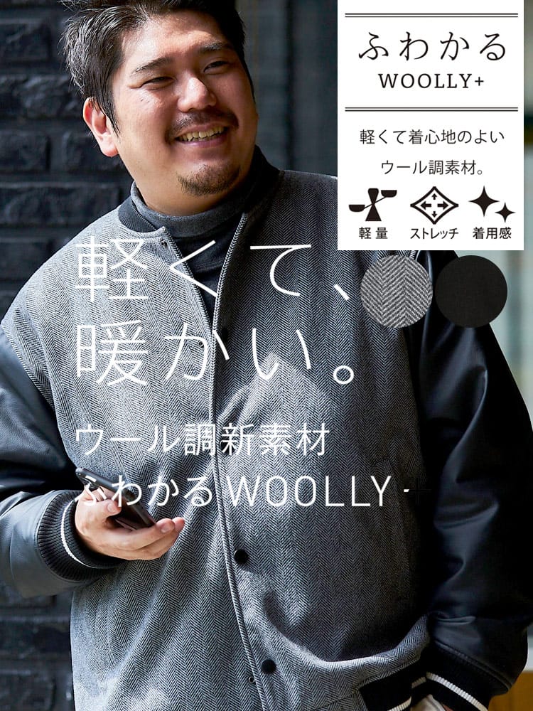 ウールのような滑らかな質感とレザーのような質感のアームの組み合わせのスタジャンです。ウールのような質感ながら、軽く肌触りのいい生地感。防寒性はもちろんのこと、薄くて軽量・ストレッチなどの機能性を持った【ふわかる】が魅力です。内側には中綿仕様のキルティングを採用。暖かく着用できてストレッチで動きやすい、ストレスフリーな一枚です。アーム部分は合皮を使い、雨や雪でも気にせず使えます。フロントスナップボタン。2つの外ポケット完備。キレイ目でもストリートでも着たくなるオススメの一枚です。