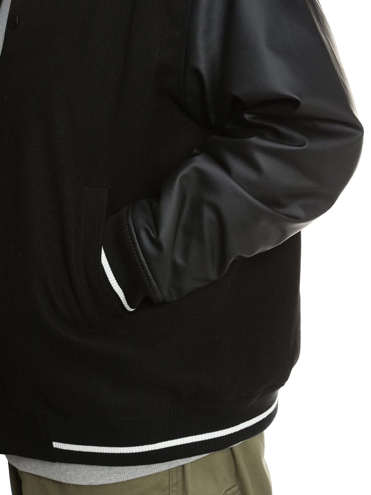 素材 :[表地]ポリエステル100% [裏地]ポリエステル100% [袖部分]合成皮革 [リブ部分]アクリル83% ポリエステル14% ポリウレタン3%