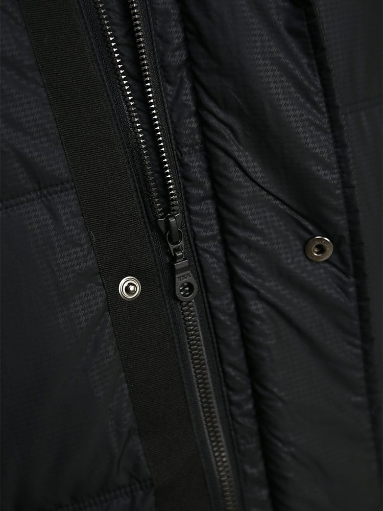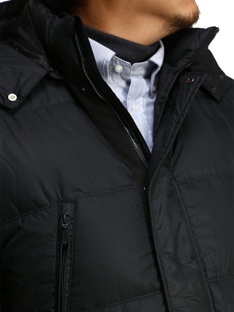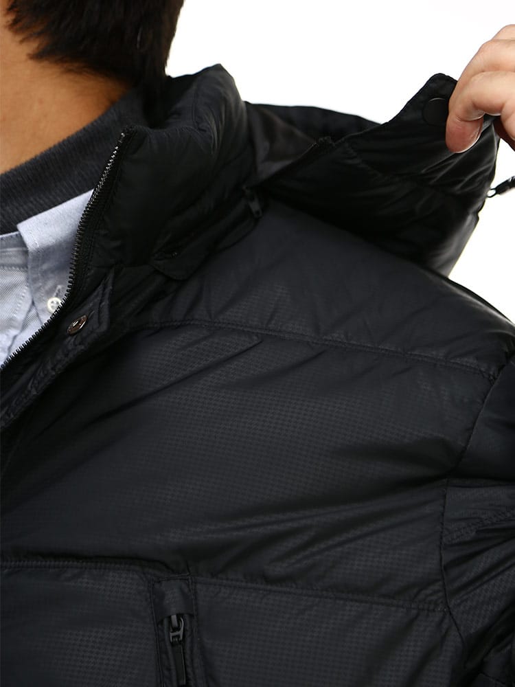 デザイン性と高い防寒機能を備えたフード付きダウンハーフジャケットです。プレミアムダウンを使用した非常に温かな着心地。TEIJINの高機能素材「MAXAS」を使用しているので防風・撥水・透湿の機能が寒さから身体を守ります。フードは取り外し可能な2WAY仕様。袖口の内側にはレイヤードのリブは配されているので冷たい風の侵入を防いでくれます。