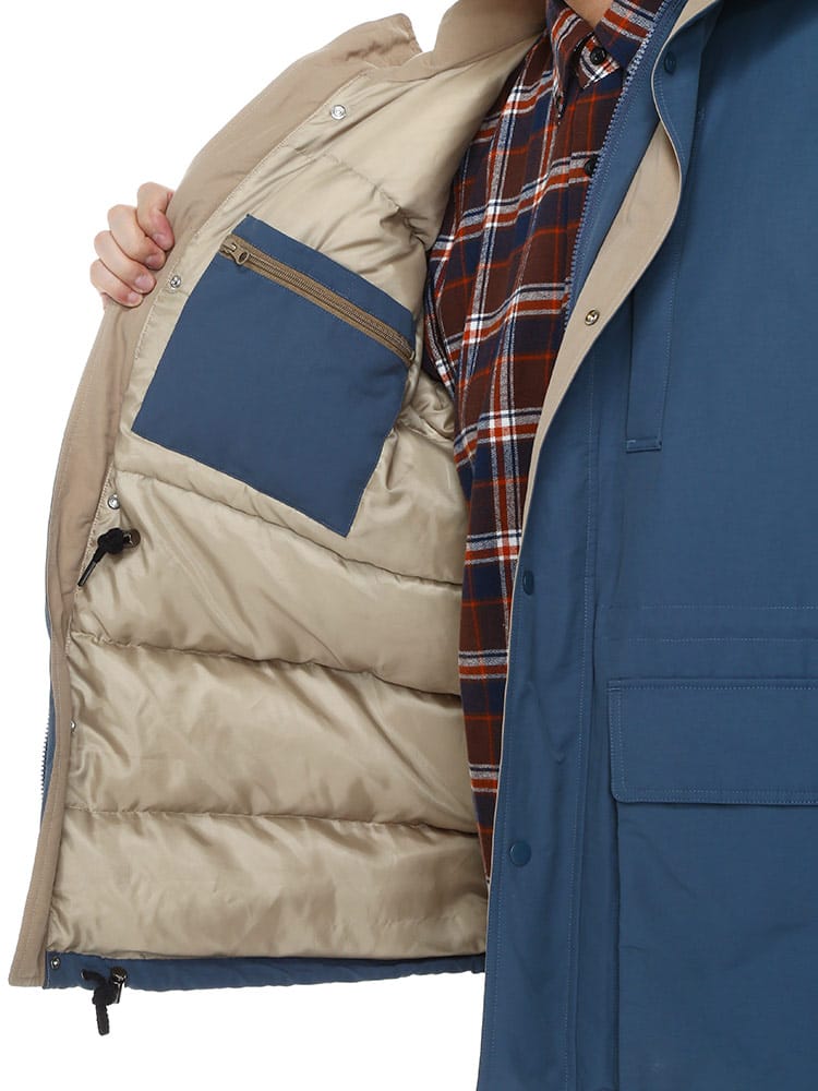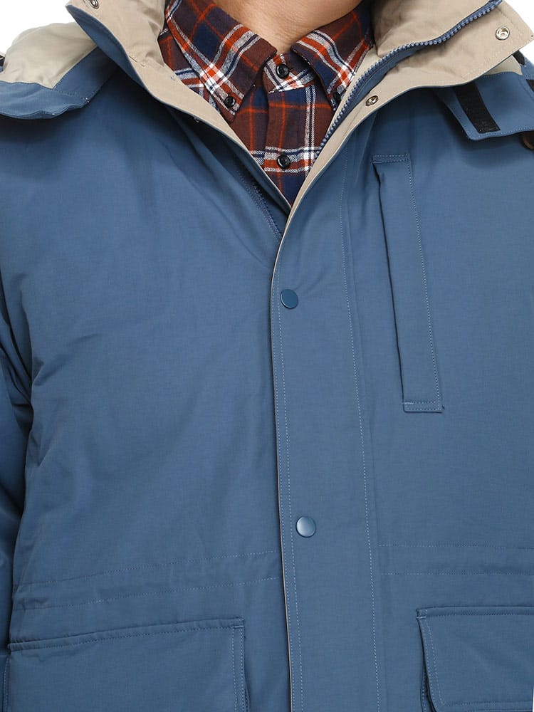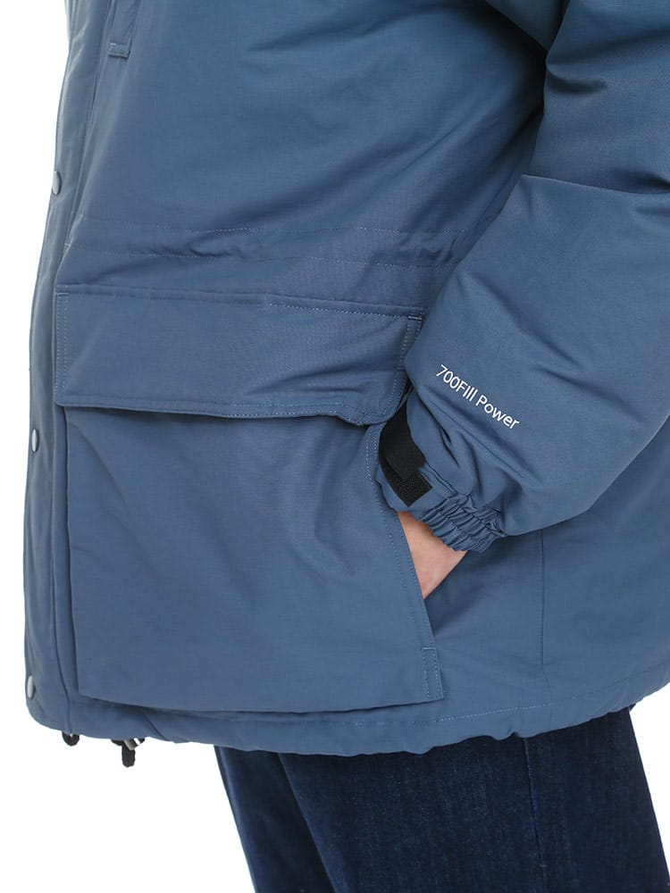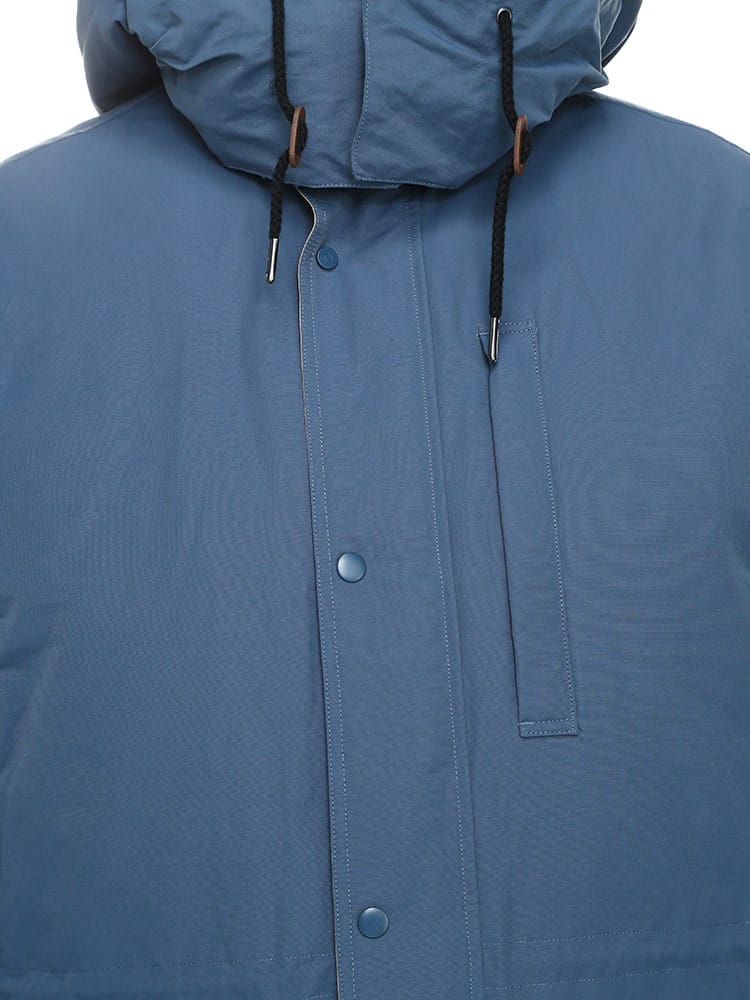 700フィルパワーの高品質ダウンを使用したマウンテンパーカーです。ダウンのソフトで暖かな着心地とお洒落なマウンテンパーカーのシルエットが楽しめる一着。ウエストと裾部分にドローコードが付いているので絞ることでスマートなシルエットをつくりだすことができる仕様。またフードの取り外しが可能なので2WAYの着こなしが楽しめます。
