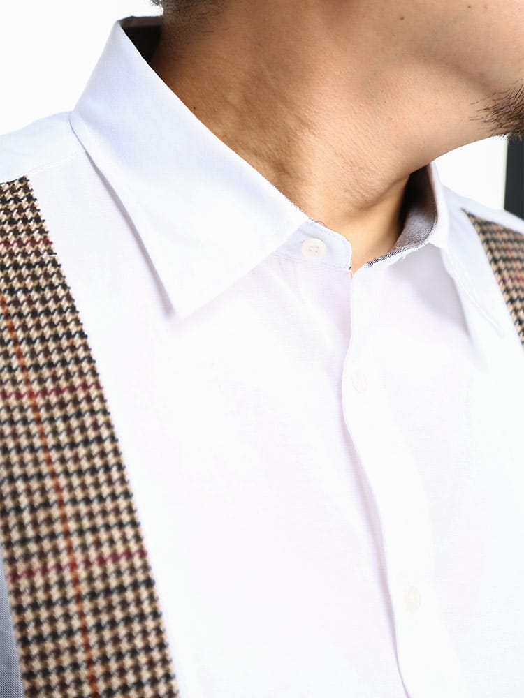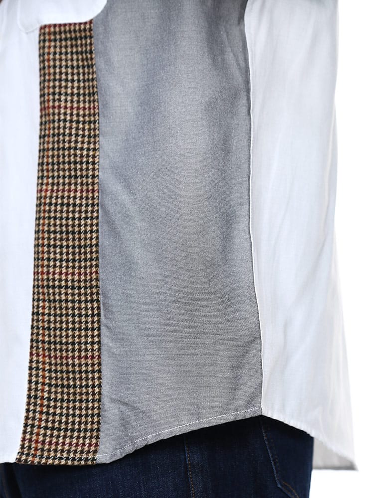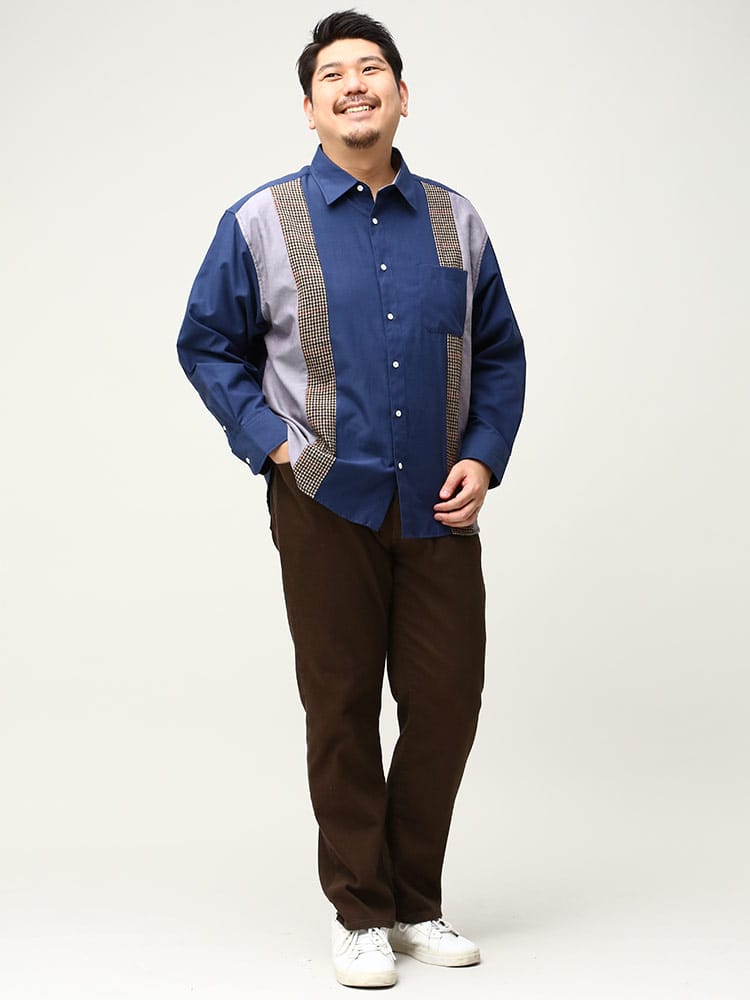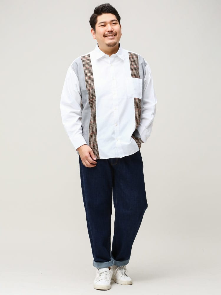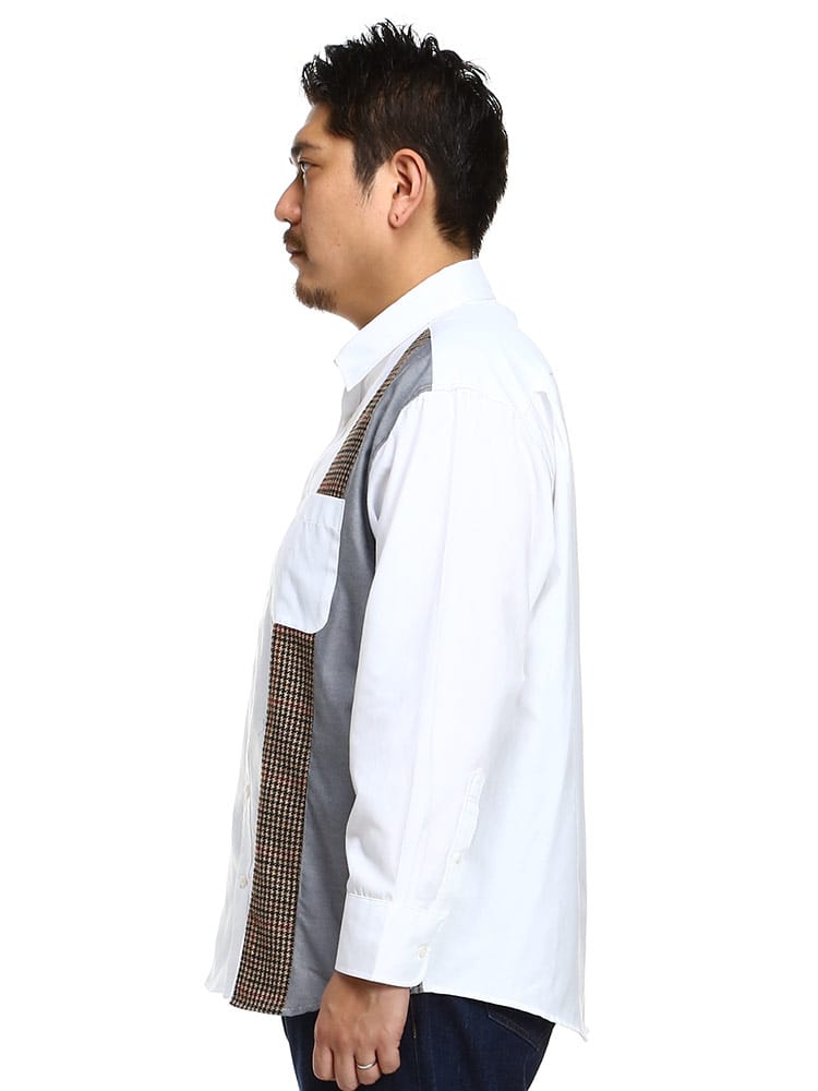 B&T CLUBの抗菌消臭 縦切り替え 長袖 オックスシャツです。デザイン性の高い縦方向の切り替えがお洒落な一着。カラー切り替えの間に配された千鳥柄が良いアクセントとなっています。シンプルな無地シャツとは違った着こなしが楽しめる、コーディネートの幅が広がるオックスシャツです。アームホールに抗菌消臭テープが縫い込まれているので清潔な着用感が続きます。