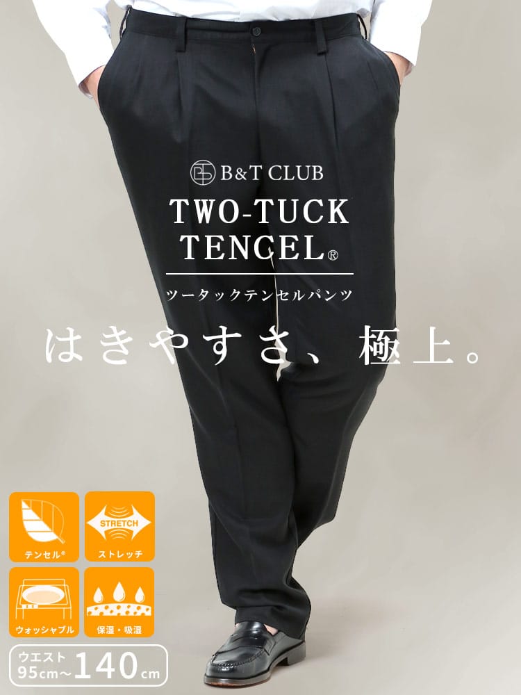 着心地と機能性を兼ね備えた、テンセル素材を使用した、ストレッチ2タックパンツ。再生可能な木材から抽出された繊維を使用し、環境に配慮した生地テンセルを使用。植物由来の生地は、柔らかく、肌触りのいい着心地を感じられます。ストレッチが効いているので、着用時のストレスを軽減してくれます。お家で洗濯可能なのも嬉しいポイントです。保湿吸湿の仕様で、長時間の着用でも快適な着心地をキープしてくれます。