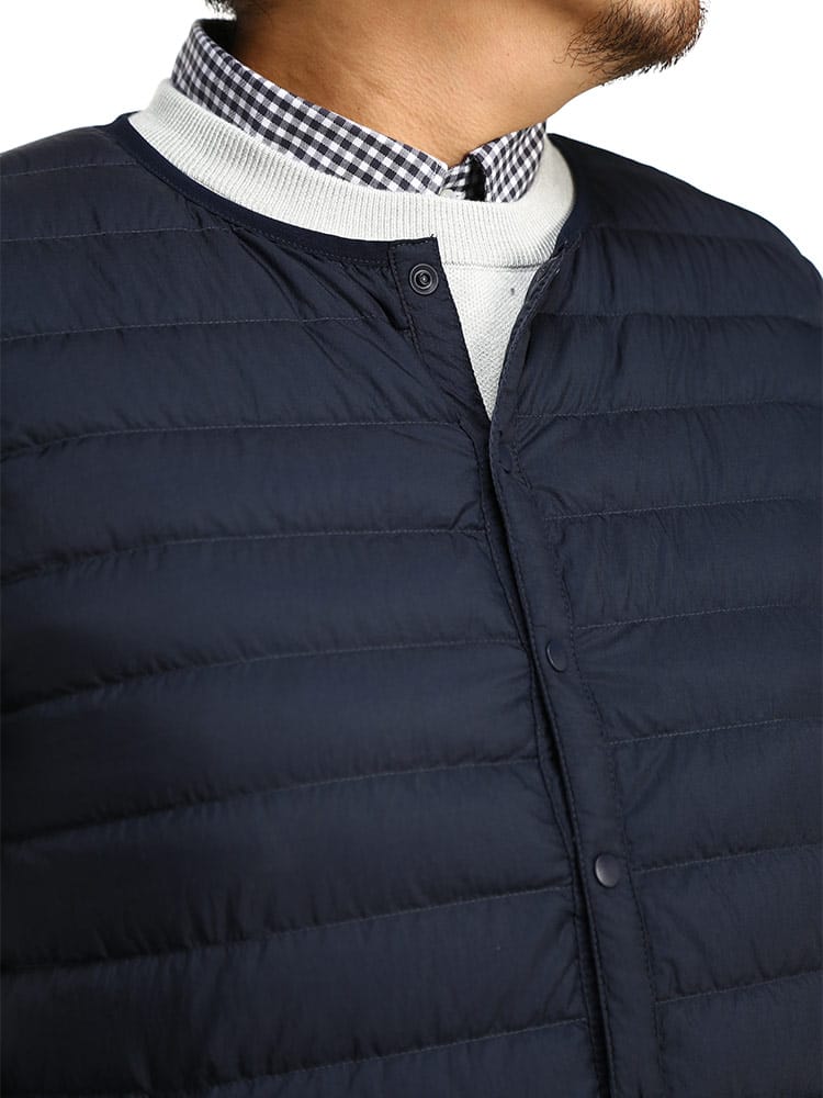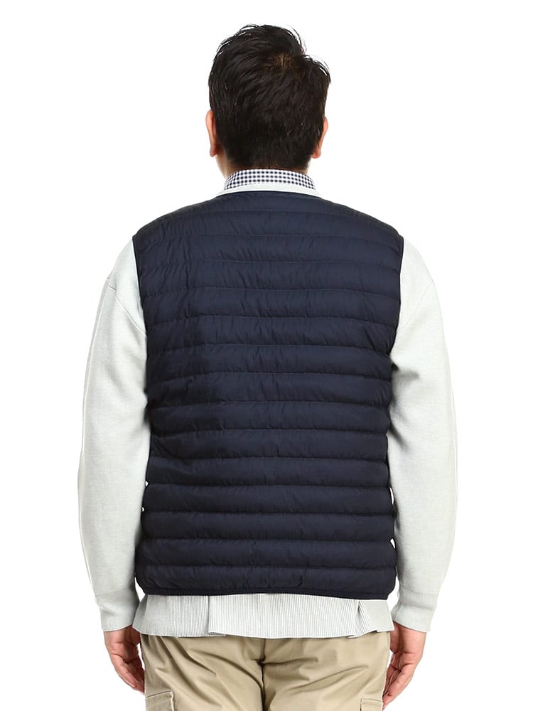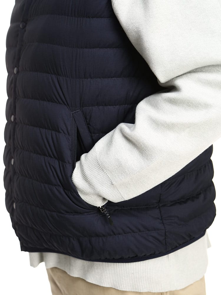 上質なプレミアムダウンを使用したナイロンワッシャーベストです。ワッシャー加工されたナイロン生地に入ったキルティングが落ち着いた雰囲気のベスト。首周り、袖、裾に伸縮性のあるパイピングが施されているのでスマートなシルエットになっています。