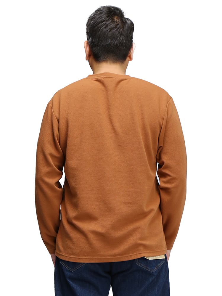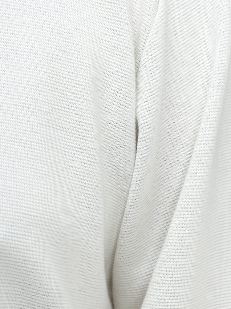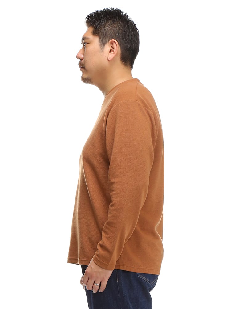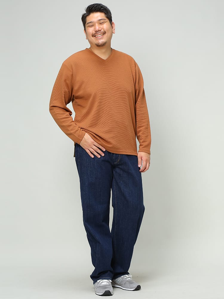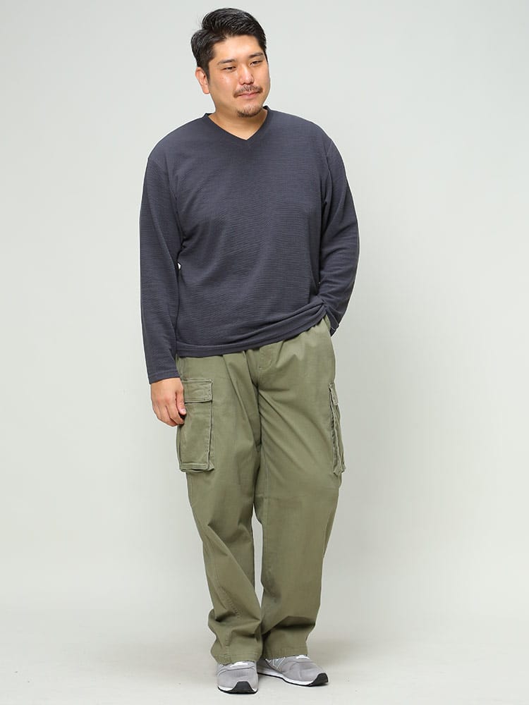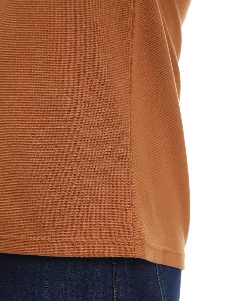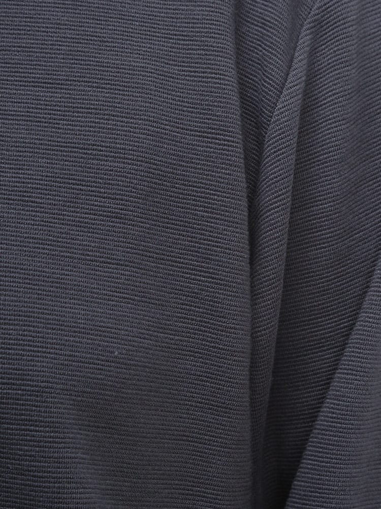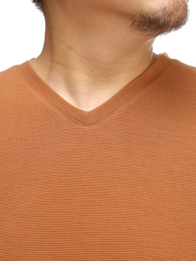 リップル Vネック 長袖 Tシャツです。浅めのVネックが、着る人を選ばない、幅広いコーディネートに使えるデザインとなっています。リップル生地の凹凸により、程よい通気性を出してくれるので蒸れなどを軽減してくれるつくりなのも嬉しいところです。シャツと合わせるもよし、ジャケットのインナーとしてもよしのオールマイティなTシャツです。