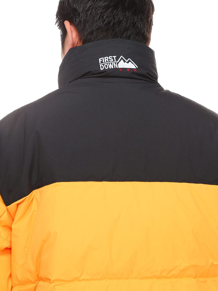 FIRST DOWNを象徴するバブルダウンジャケットの表地を超軽量素材に変更したイノベーションモデル。90年代を彷彿とさせるPOPなカラーバリエーション。付属のパッカブル袋に収納可能。超軽量10デニール高密度ナイロンを使用。撥水機能に優れており、柔らかな質感が特徴。静電防止加工した20デニールの高密度ナイロンを使用。生地とダウンの相性が良く、ボリュームのあるロフト感で体を包み込むような着心地。ダウン90%フェザー10%のホワイトダックダウンを使用。最適なボリュームを計算し、""着心地""に特化したダウン量を充填。トレーナーやパーカーなどカジュアルアイテムに合わせやすく、ワイドデニムパンツとの相性も良い。気軽に羽織れるワンマイルウェアとしても最適な1枚。