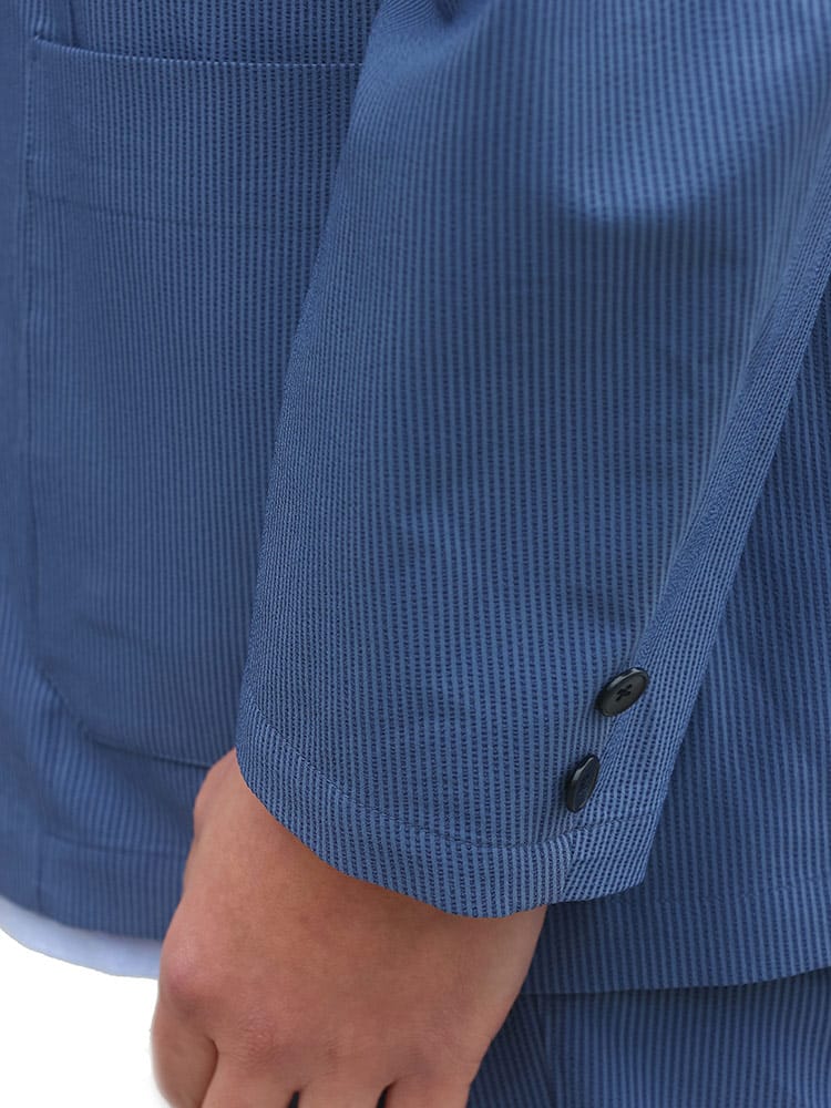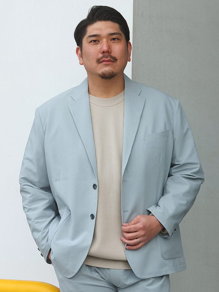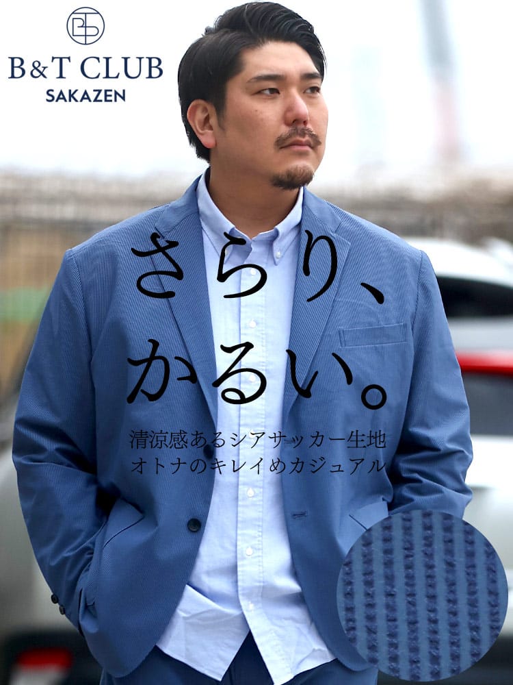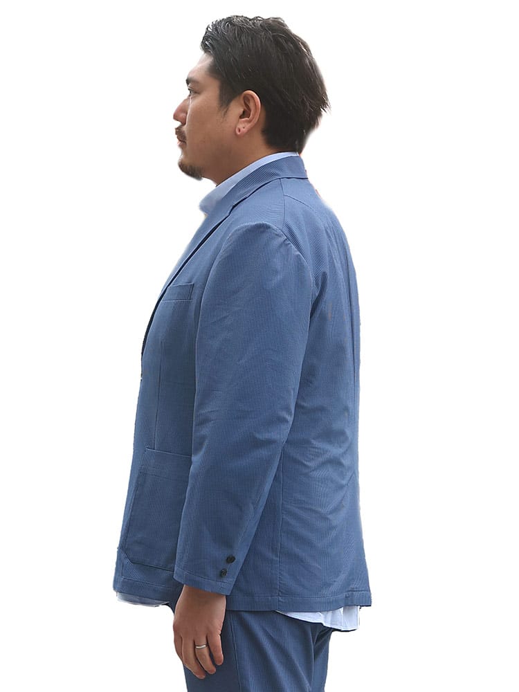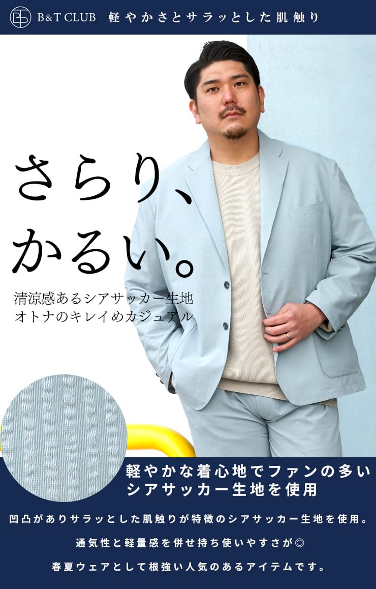 軽量感のあるシアサッカー素材を使用した2ツ釦ジャケットです。春先などに最適な、涼感のある一着。軽量で使い勝手の良いジャケットは、キレイめカジュアルコーデにもってこいのアイテム。同型のシアサッカーパンツを組み合わせてジャケパンセットで大人コーデもできます。