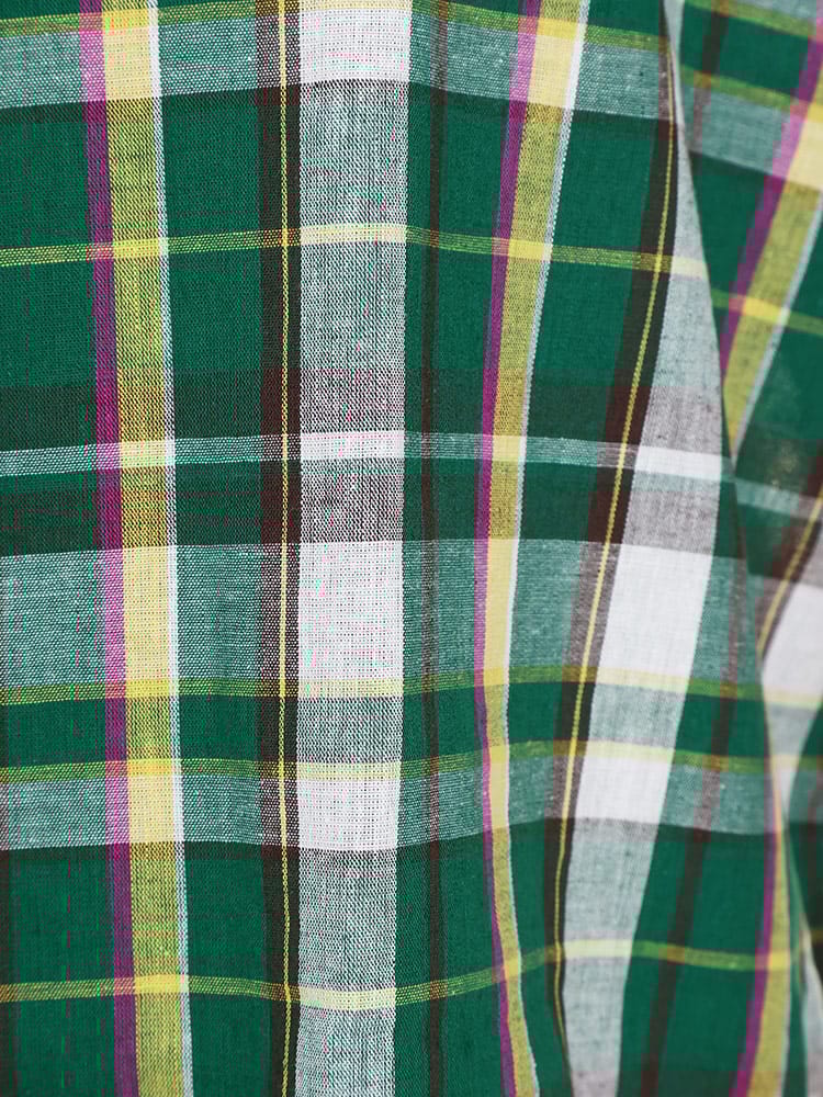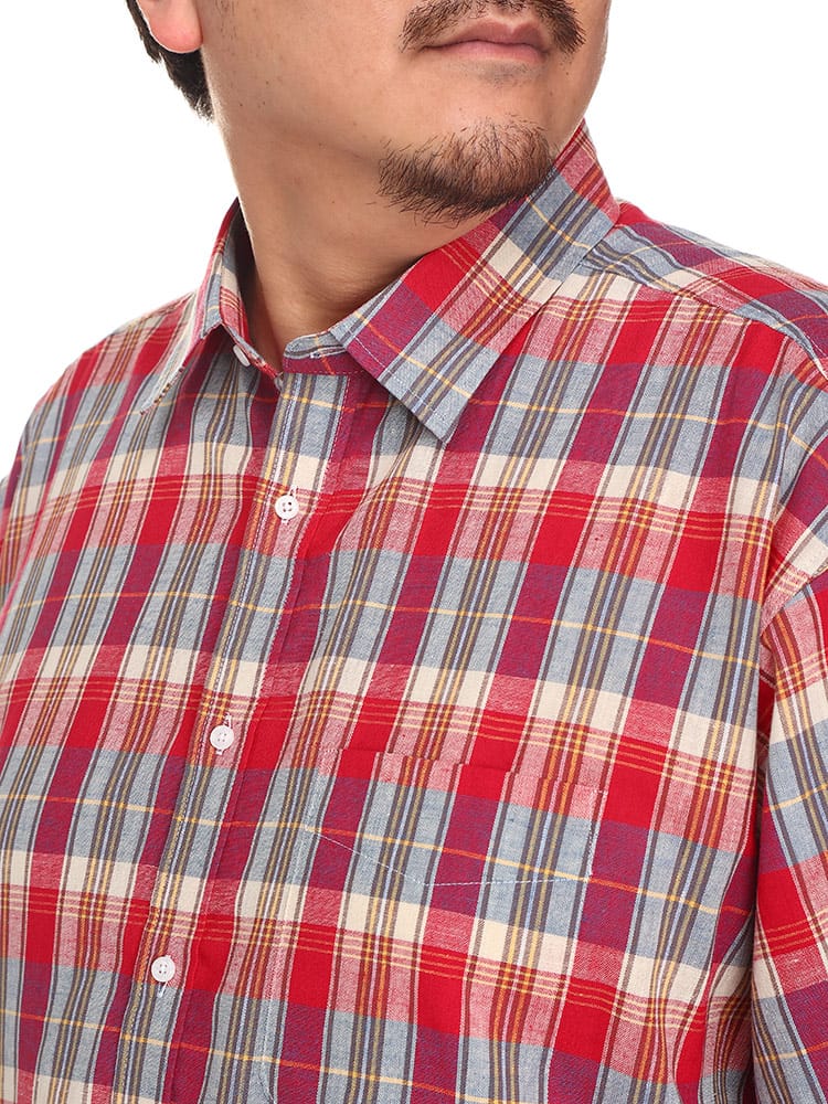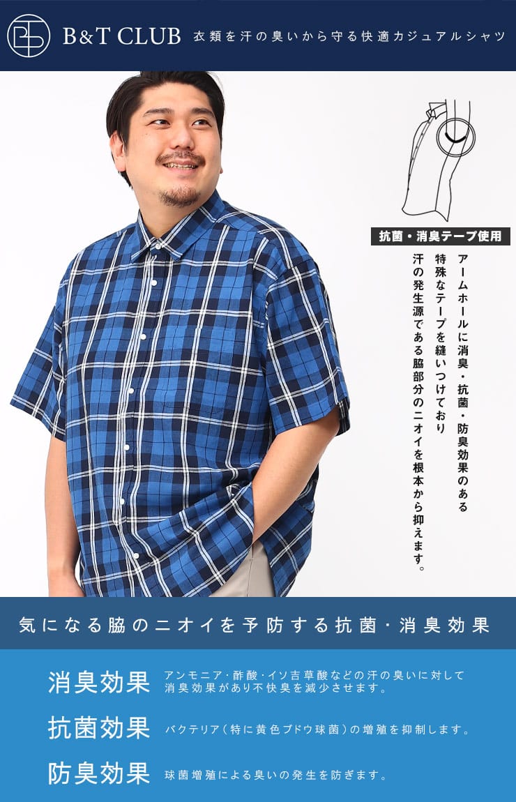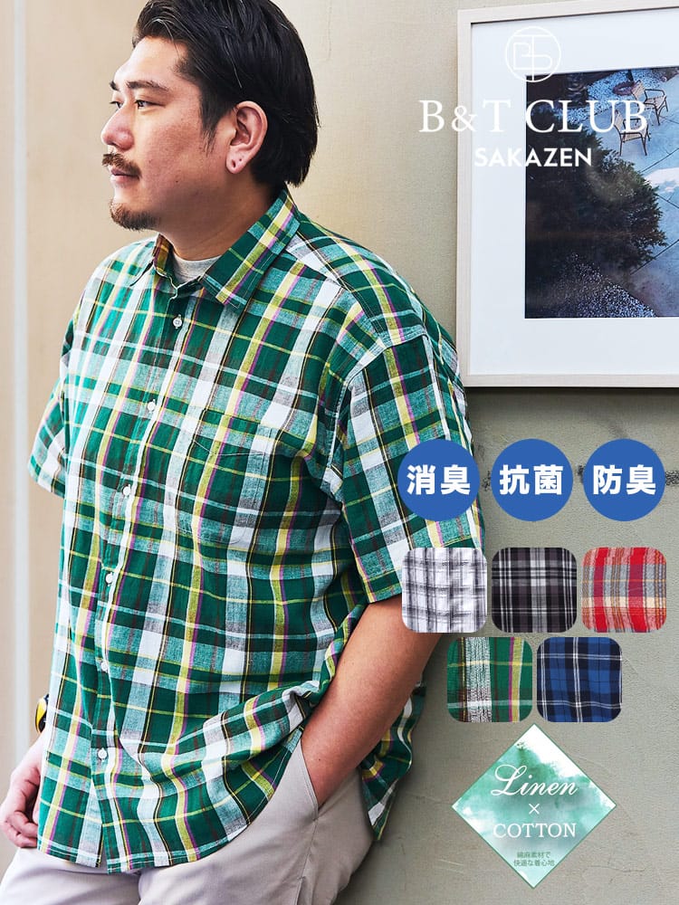 B&T CLUBの綿麻 チェック柄 レギュラー 半袖 シャツです。麻混によりさらりとした肌ざわりと軽量感のある素材が夏のトップスに最適な一着。麻特有の通気性により涼しい着心地を堪能することができる夏の定番半袖シャツです。アームホールには抗菌防臭・消臭テープを配しているので、より清潔に着用することができます。
