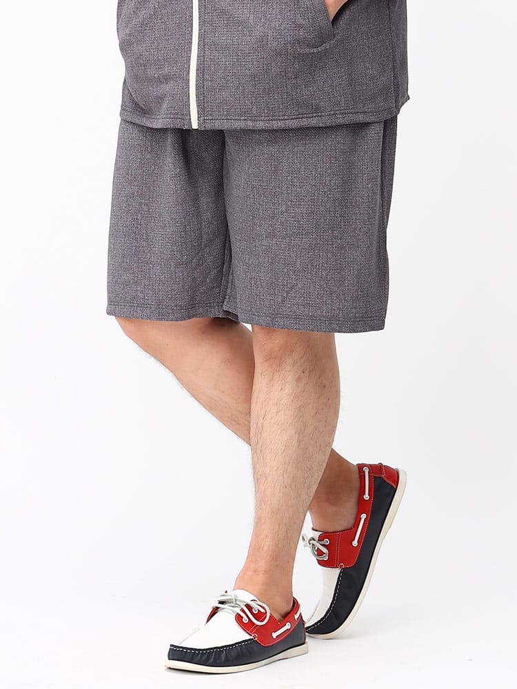 ストレスを感じさせない快適ウェアとして大人気!サカゼンオリジナルの快ラクWEARのドライワッフル 無地&総柄 ショートパンツです。ゆったりとしたシルエット、ストレッチ素材によるストレスフリーな着心地が特徴的です。ドライワッフルによるソフトな触り心地、すぐ乾きやすいドライ素材を使用しています。ウエストゴムにドローコードが付いているので、腰周りの細かい調節が可能。