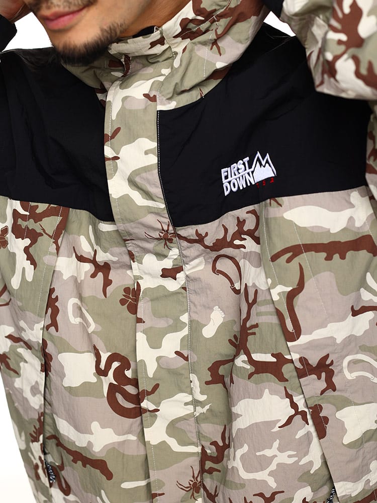 アウトドアでもタウンユースでも着てほしいという思いから誕生したモータウンジャケットはFIRSTDOWNUSAの定番アイテムです。特徴的なデザインで切り替えたカラーリング。収納力のあるサイドポケット、防風性を上げる前立て仕様となっています。
