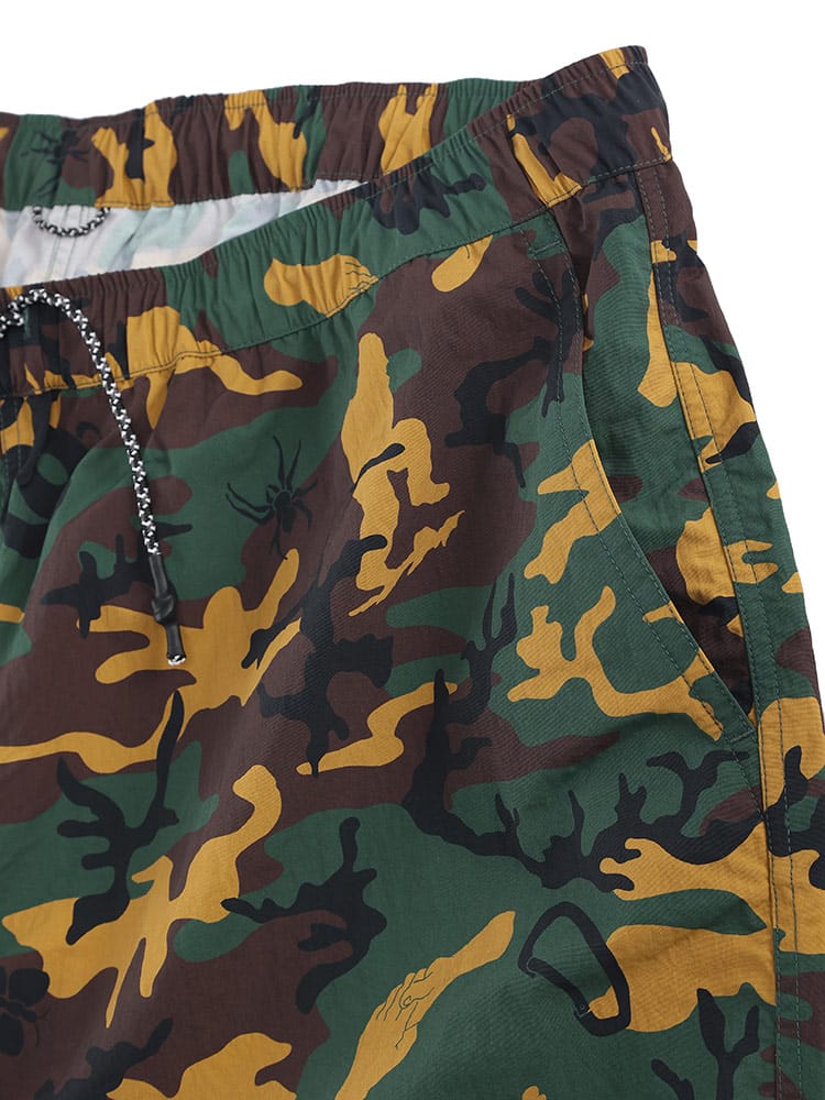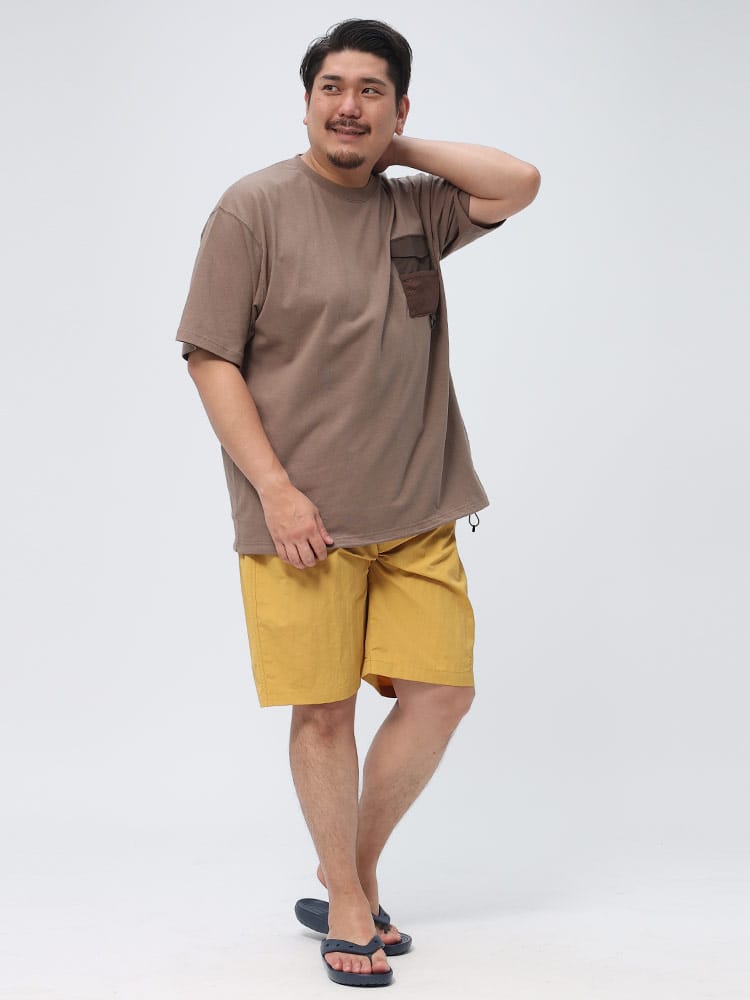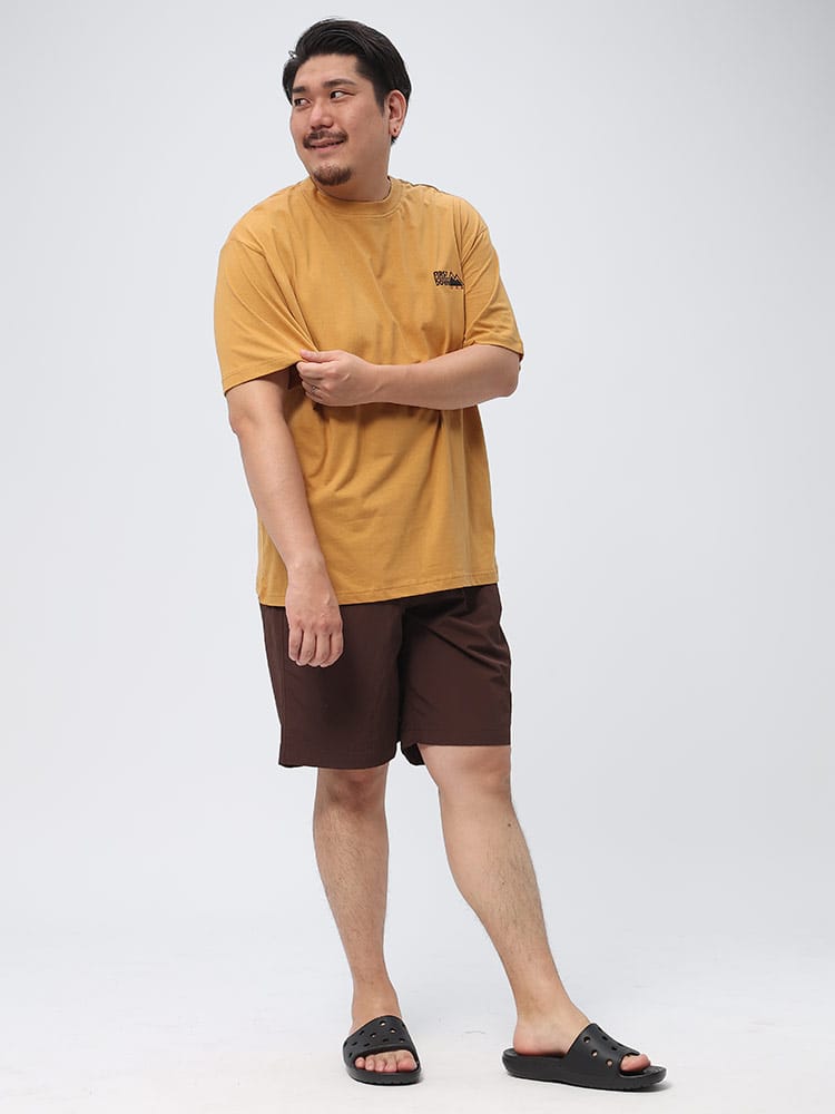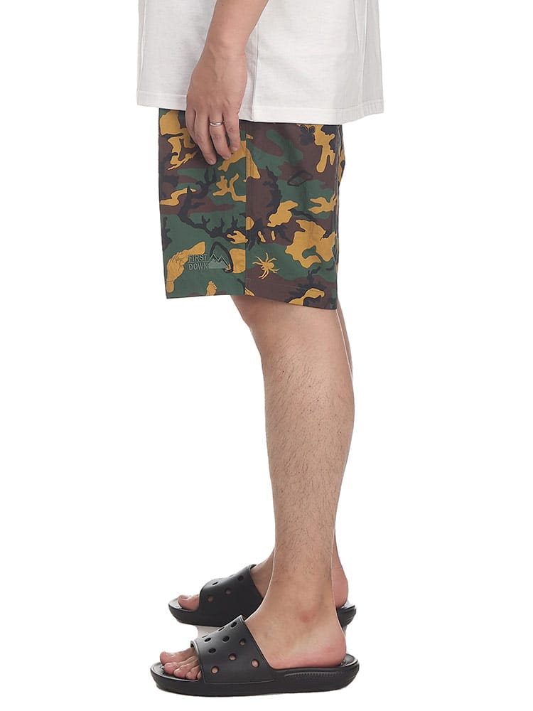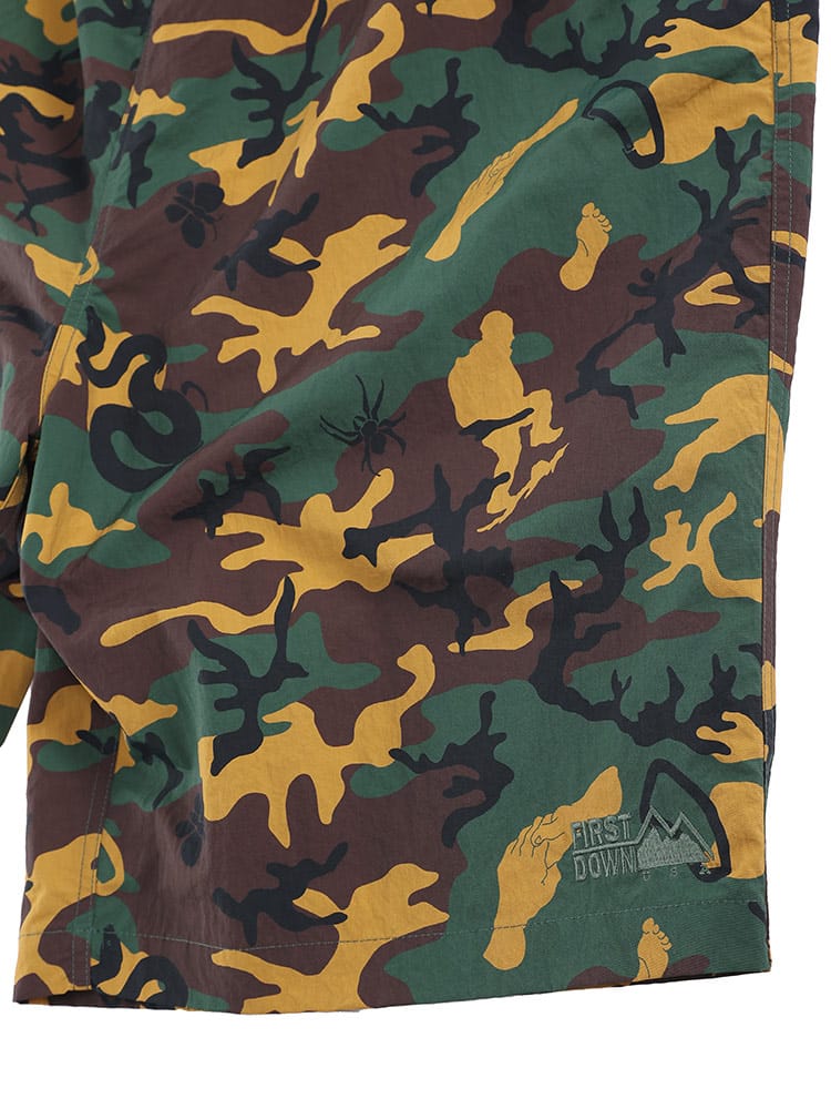 シンプルで王道のショートパンツ。丈感にもこだわった一本。表地にはコットンライクなナイロンタスランを使用。柔らかくさらっとした質感で肌ざわりもよい。撥水効果があり機能性にも優れている。FIRST DOWN USAについては全体的にやや大きめのサイズスペックになっております。