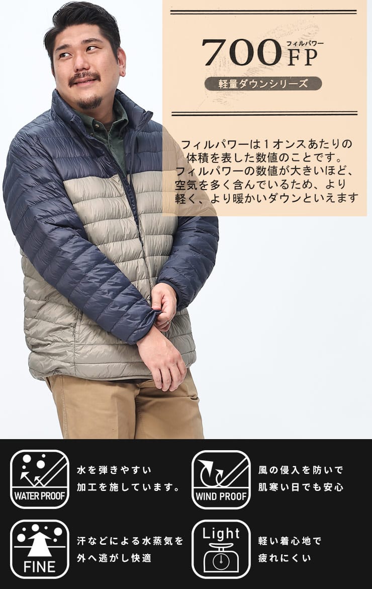 仕様 :外側ポケット数×2つ / シングルジップ / 撥水加工 / 軽量 / 透湿性 / 防風性 / 700フィルパワーダウン