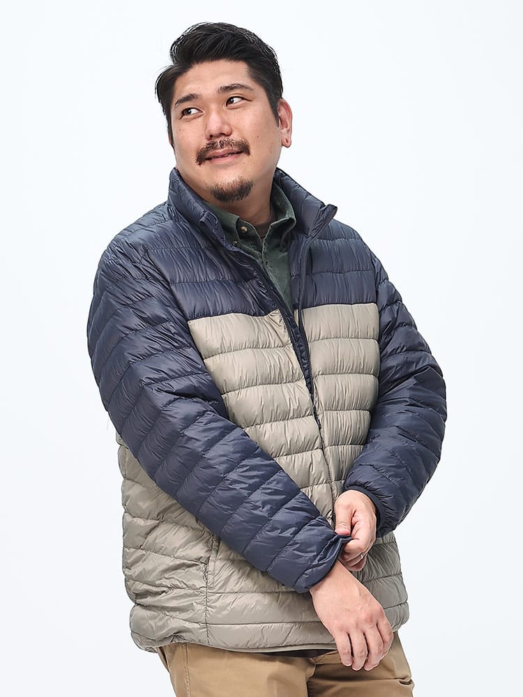 素材 :[表側]ナイロン100% [裏側]ナイロン100% [中綿]ダウン90% フェザー10% [衿部分]ポリエステル100%