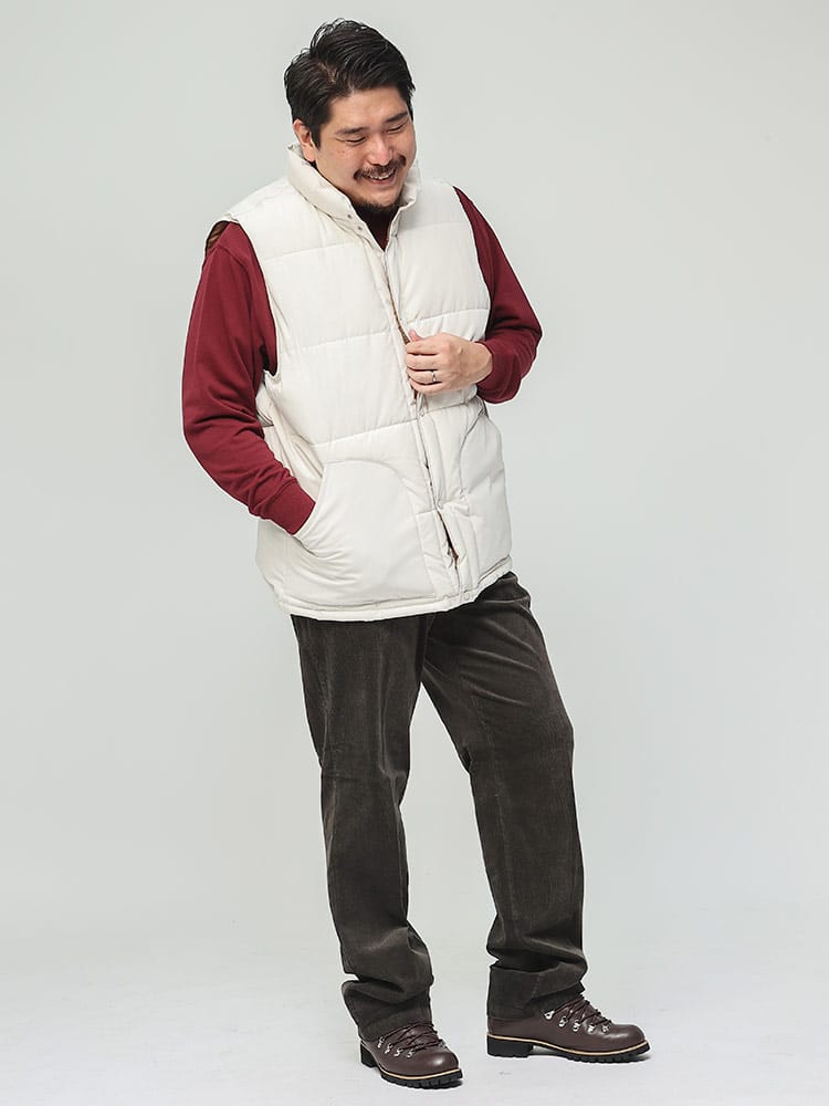 防寒性と軽さを兼ね備えたスタンドカラーの中綿ベスト。細部にまでこだわりを感じるグログラン仕様で、アメカジやミリタリー風のデザインが特徴。アウトドアシーンから日常のスポーツまで、幅広い場面での活躍が期待できます。体温調節が容易なので、寒い季節のレイヤードスタイルにも最適。シンプルながらも存在感のあるデザインが、あなたのコーディネートを一段と引き立てます。耐久性と機能性を持ち合わせ、長く愛用していただける一品です。