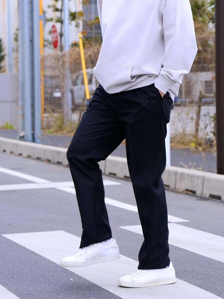 2タックのディテールは、シルエットに深みを加え、スタイリッシュな印象を持たせます。