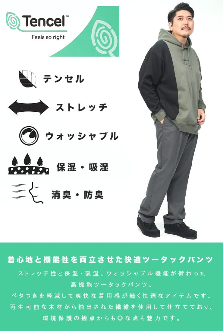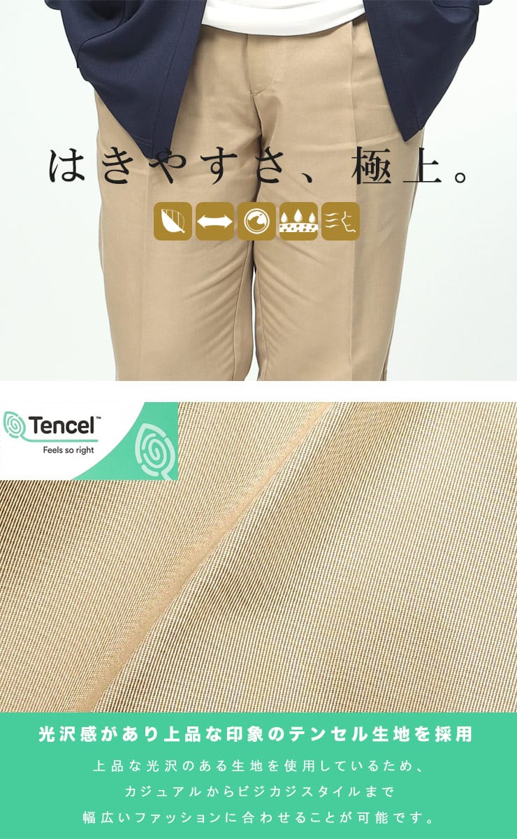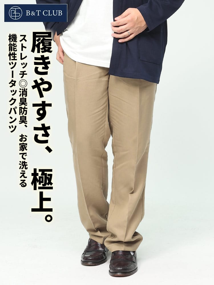 仕様 :外側ポケット数×4つ / ジップフライ / ツータック / ストレッチ / ウォッシャブル / 保湿・吸湿 / 消臭・防臭