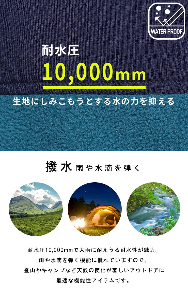 EVOL TEXの防風フリースジップジャケットは、多機能アウターウェアです。撥水性と耐水圧10,000mmを備え、雨天時でも身を守ります。防花粉機能とUVカット性能で春先のアウトドアに最適です。防風性に優れ、冷たい風を遮断し、柔軟なストレッチ素材が動きやすさを提供します。アクティブなシーンでも快適性を維持する、実用的でスタイリッシュなジャケットです。