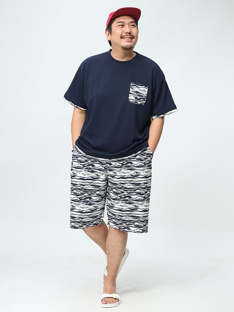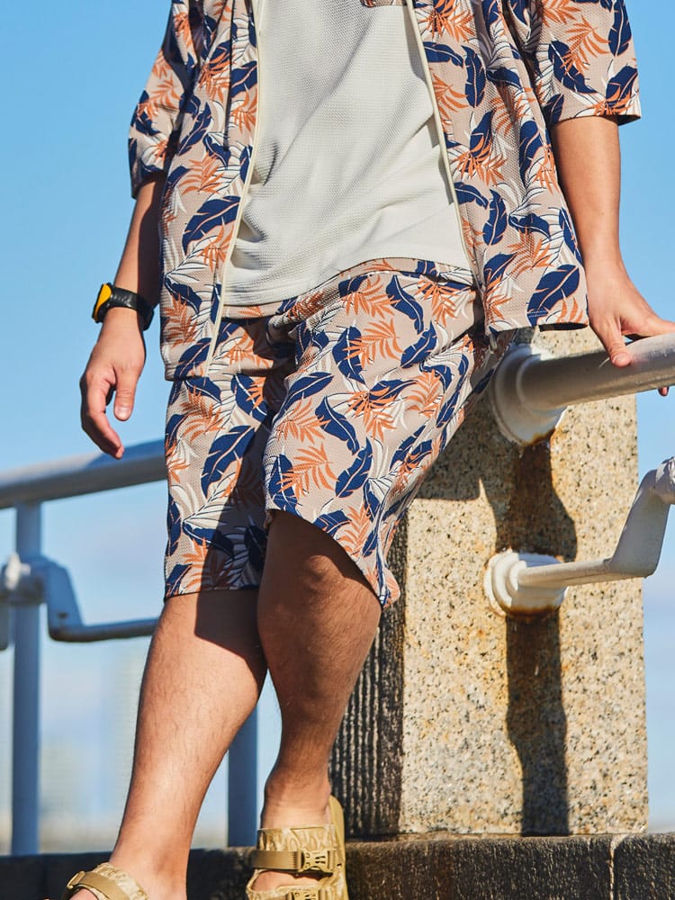 DRYワッフルショートパンツは、ストレッチ性に優れた素材で快適な着心地を実現しています。ウエストゴムとドローコードにより、さまざまな体型に対応しやすくなっています。また、総柄プリントが施されており、おしゃれで目を引くデザインが特徴です。カジュアルなスタイルに適しており、夏のリラックスウェアやアクティブシーンにも最適なアイテムです。