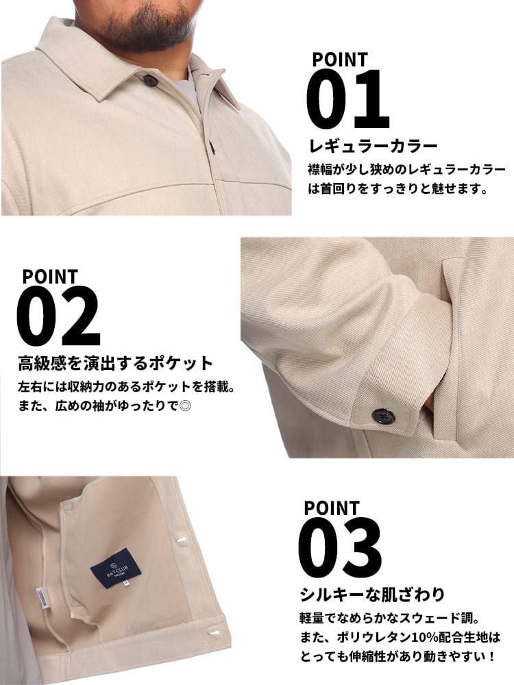 凸凹した肌ざわりのカルゼスエード生地を使用しており、高級感溢れる一着。