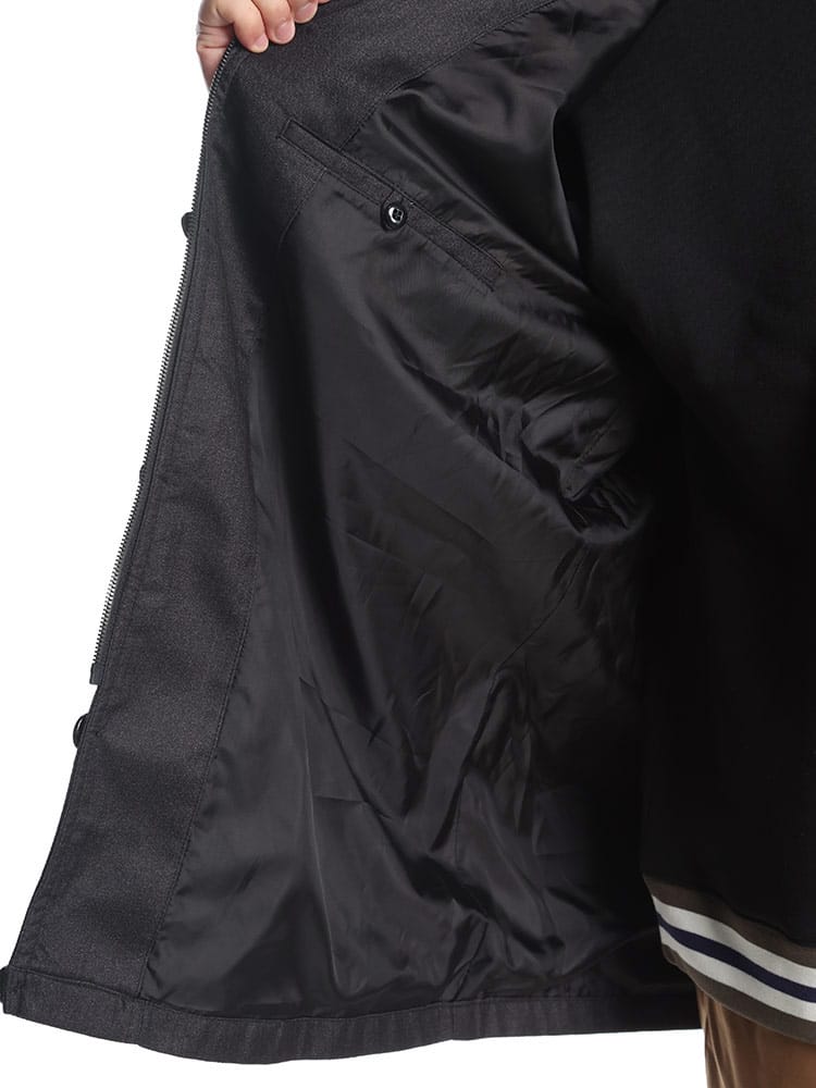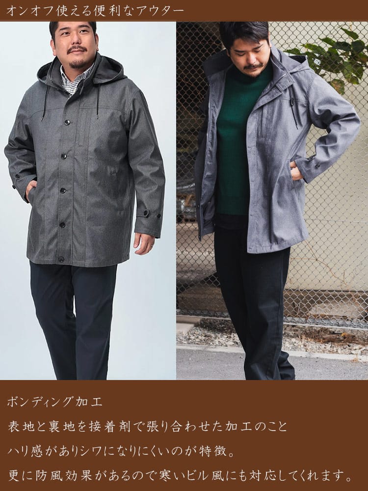 表地と裏地を接着剤で張り合わせる加工が施されたボンディング加工のコートです。