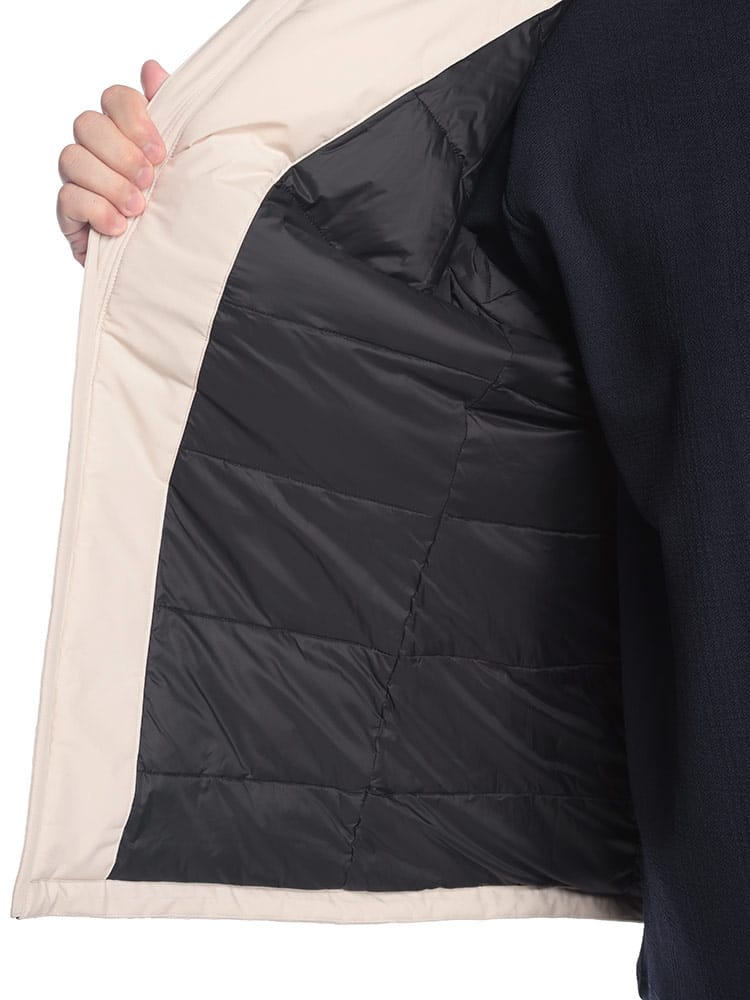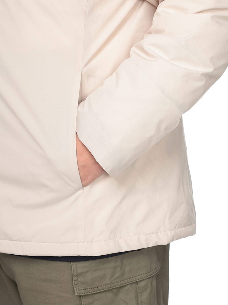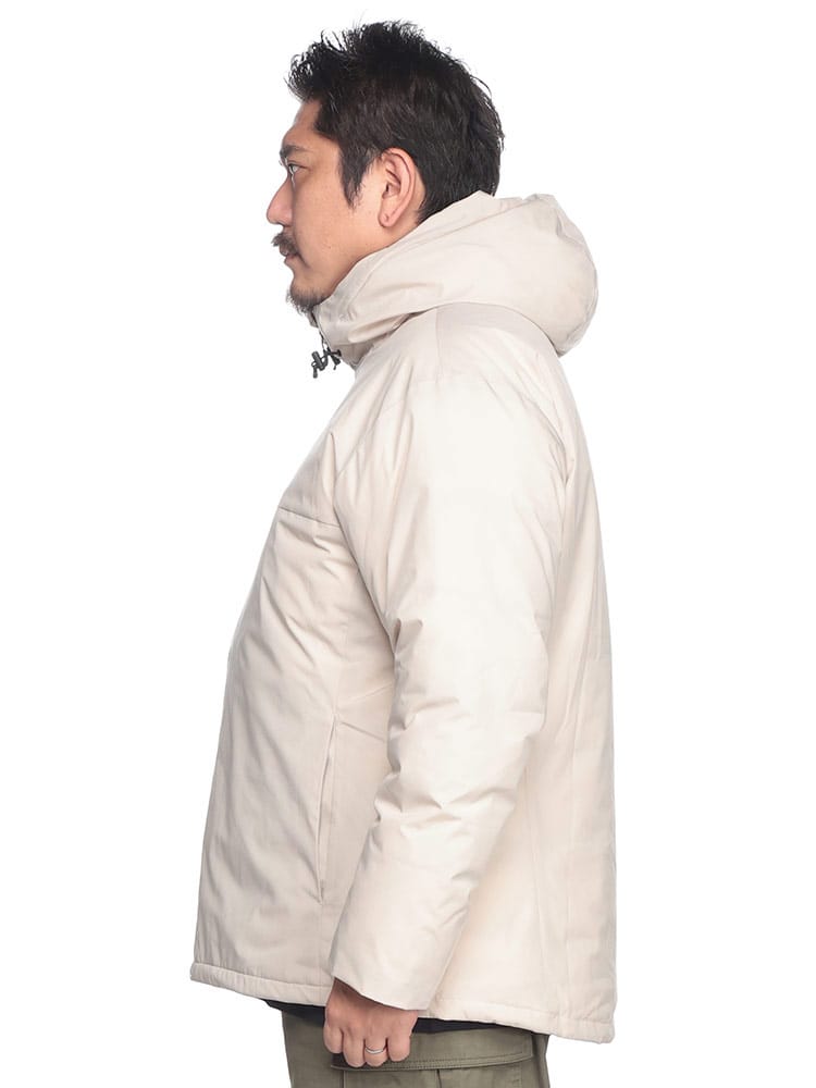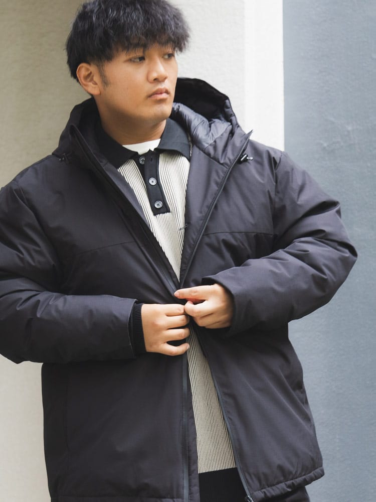 素材 :[表地]ポリエステル100% [裏地] ポリウレタン樹脂コーティング [リブ]ポリエステル97% ポリウレタン3% [中綿] ダウン90% フェザー10% [フード]ポリエステル100% [フード裏]ナイロン100%