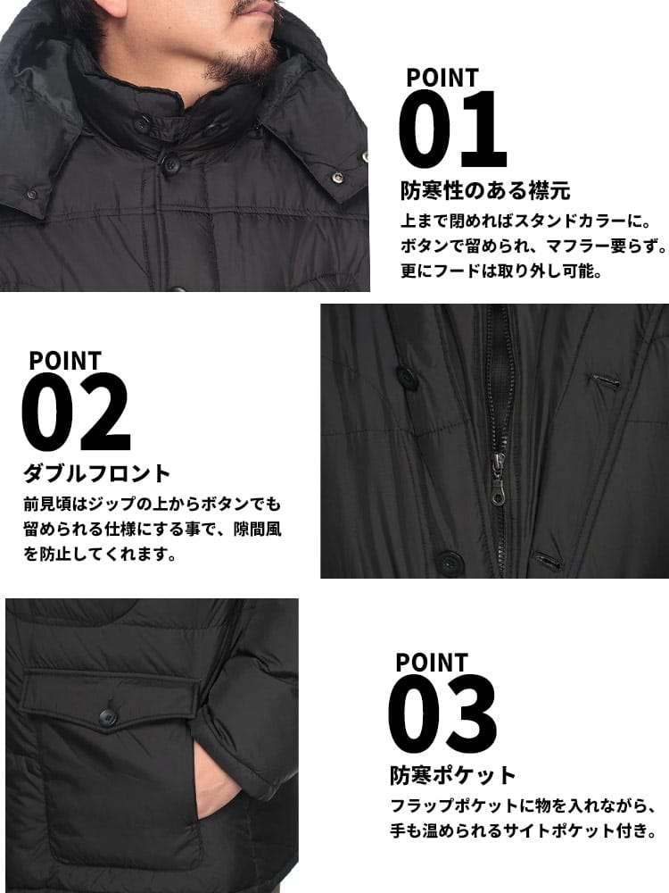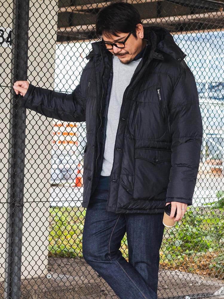 仕様 :外側ポケット数×4つ / 内側ポケット数×1つ / シングルジップ / フード着脱可能 / フェイクレイヤード