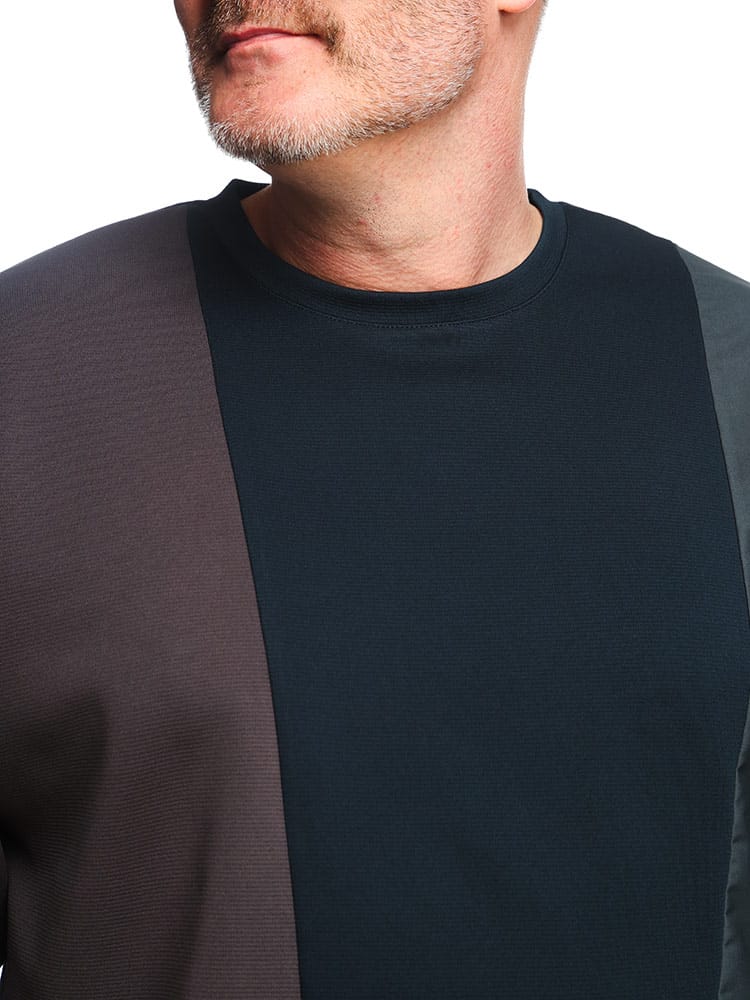 B&T CLUBのミラノリブポンチ 布帛切替 クルーネック 長袖Tシャツは、洗練されたデザインと快適な着心地が魅力です。ミラノリブポンチ素材を使用し、適度な厚みと柔らかさを兼ね備えています。布帛切替のディテールがアクセントとなり、スタイリッシュな印象を与えます。クルーネックのシンプルなデザインで、カジュアルからきれいめスタイルまで幅広く対応。